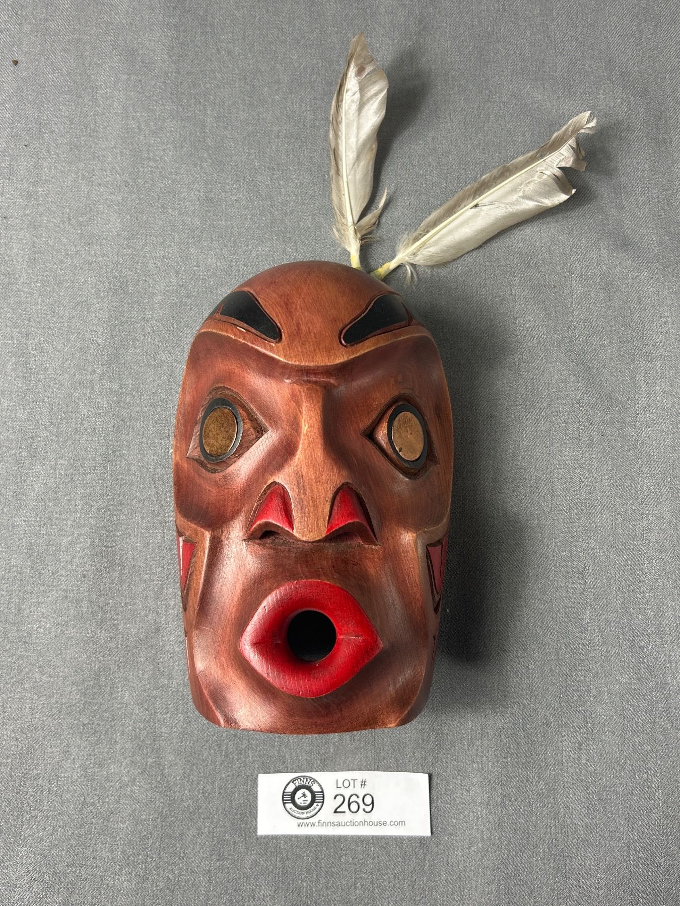 7" Tall Spirit Mask w/ Copper Inlayed Eye's, Signed By Eric Baker, Squamish Band 1992