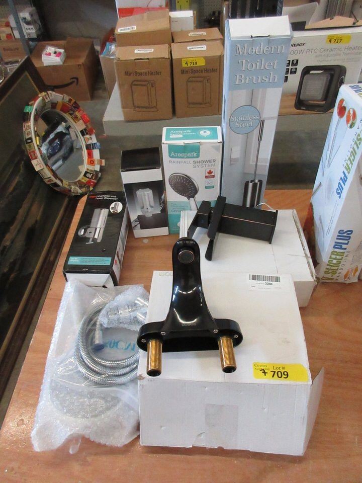 Toilet brush, shampoo soap dispensers, shower head & more.