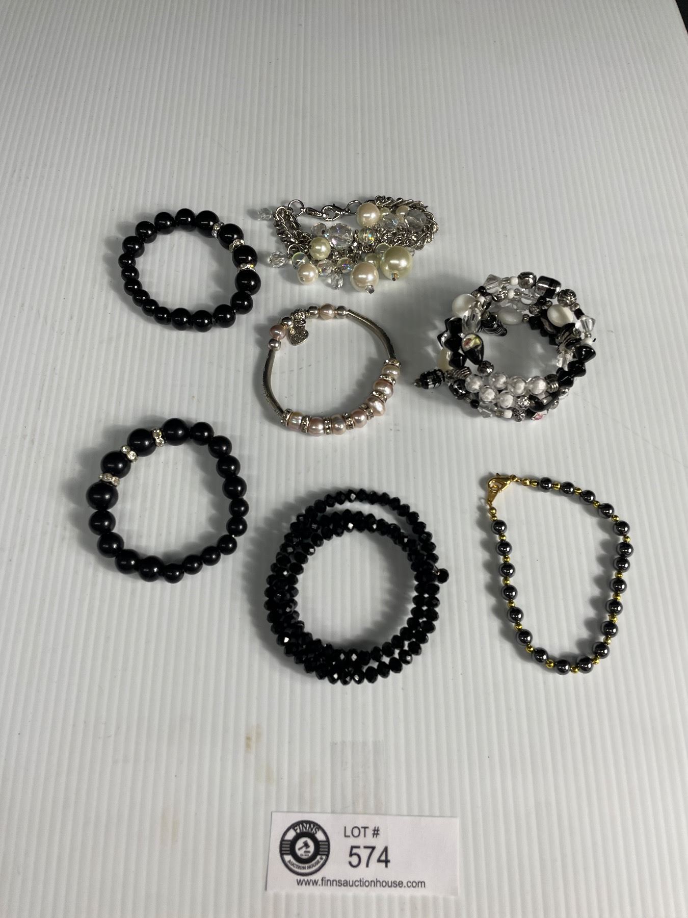 7 Vintage Bracelets, Some Crystal, 1 Glass, Genuine Hemitete, Pearls
