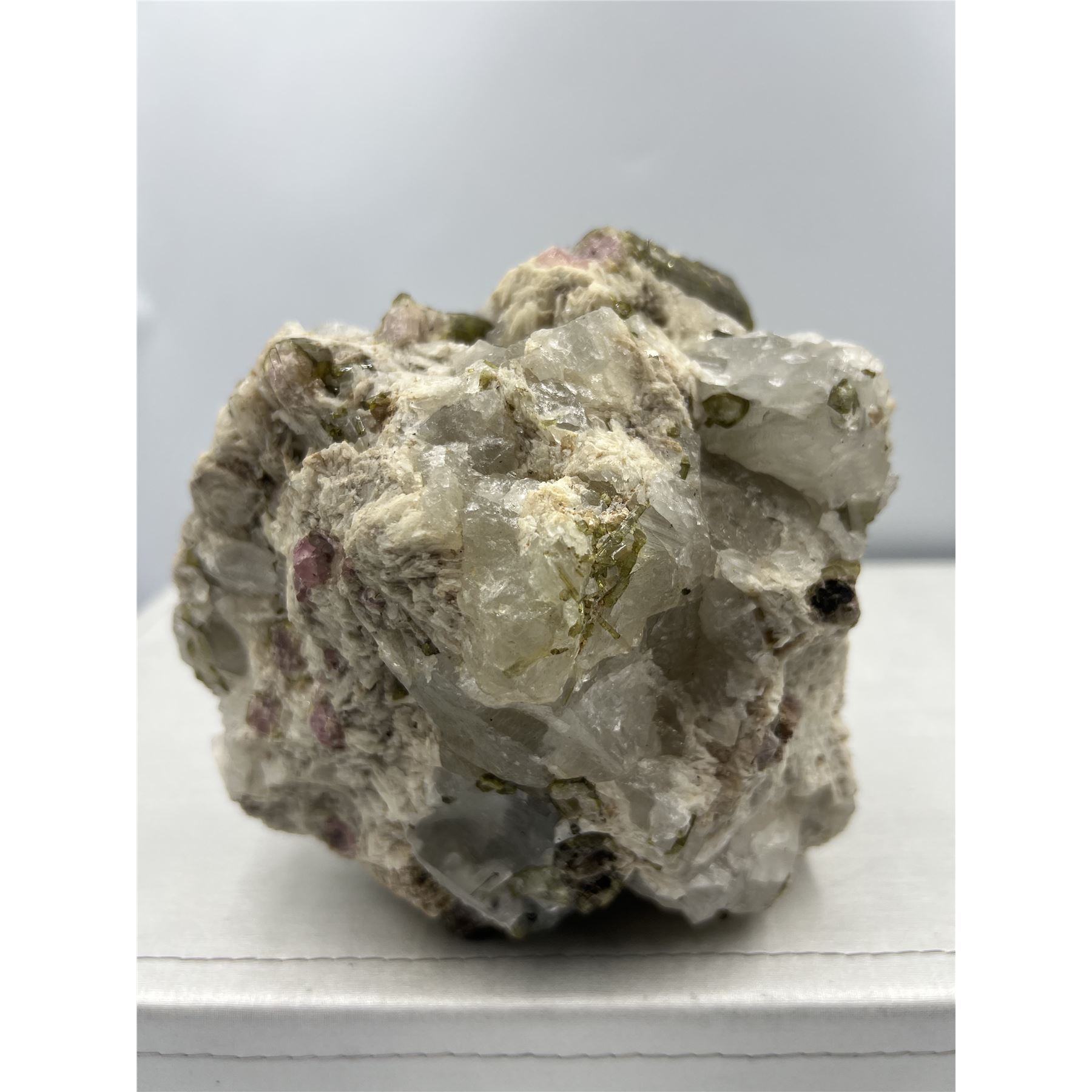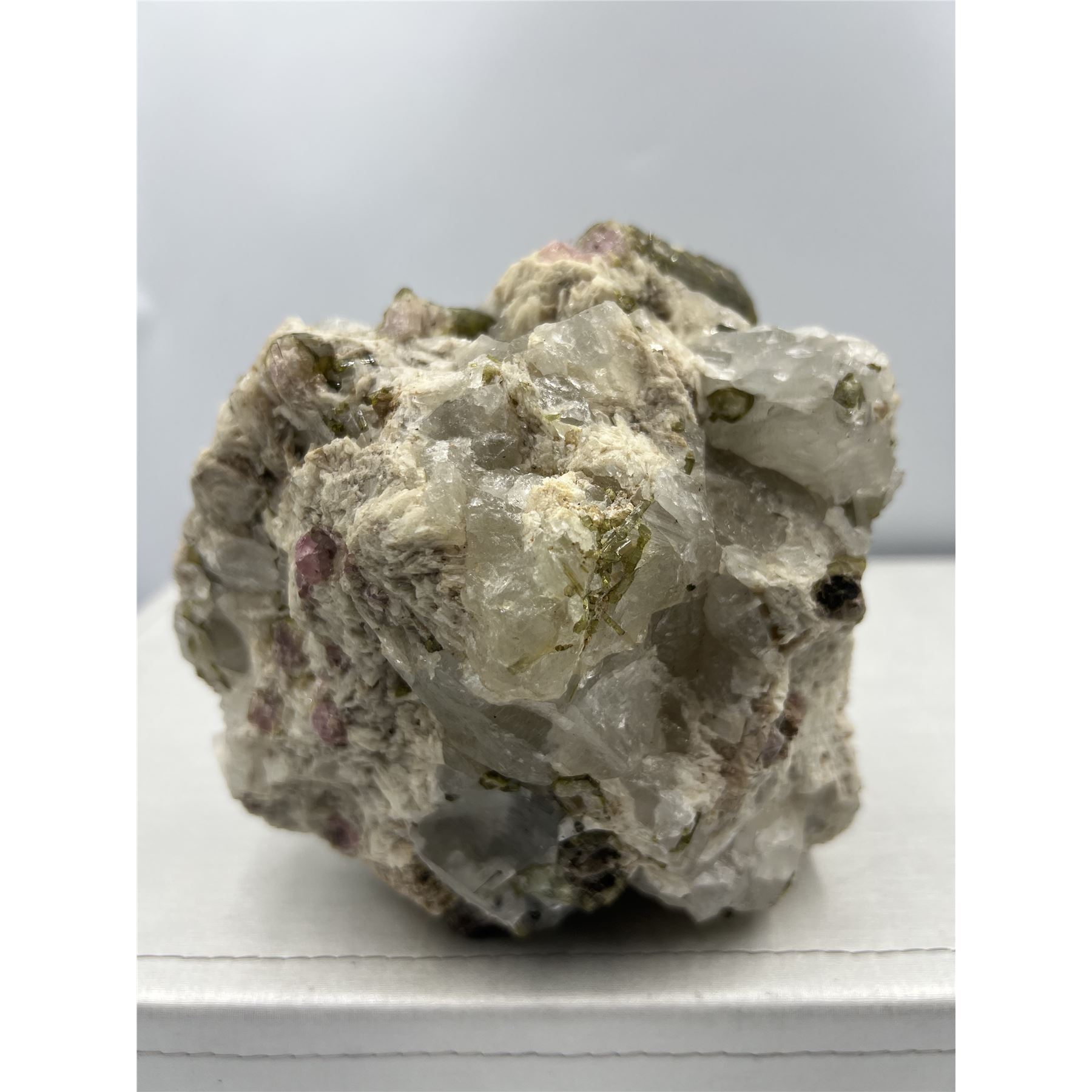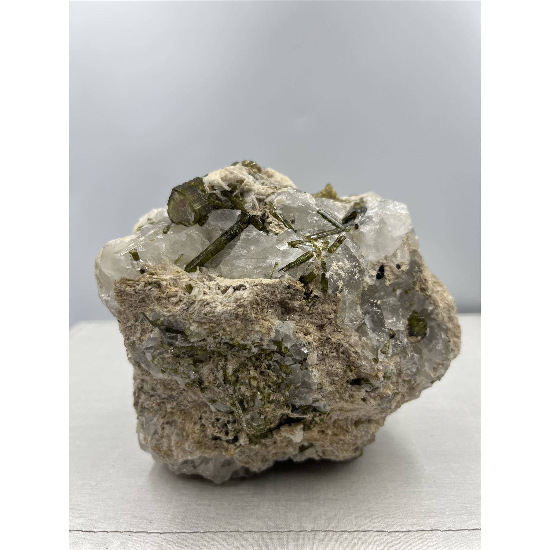 7 X 7 INCH GREEN AND PINK TOURMALINE IN CLEAR QUARTZ MATRIX