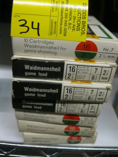 7 boxes of Rottweil 16 ga 2 1/2" various shot size