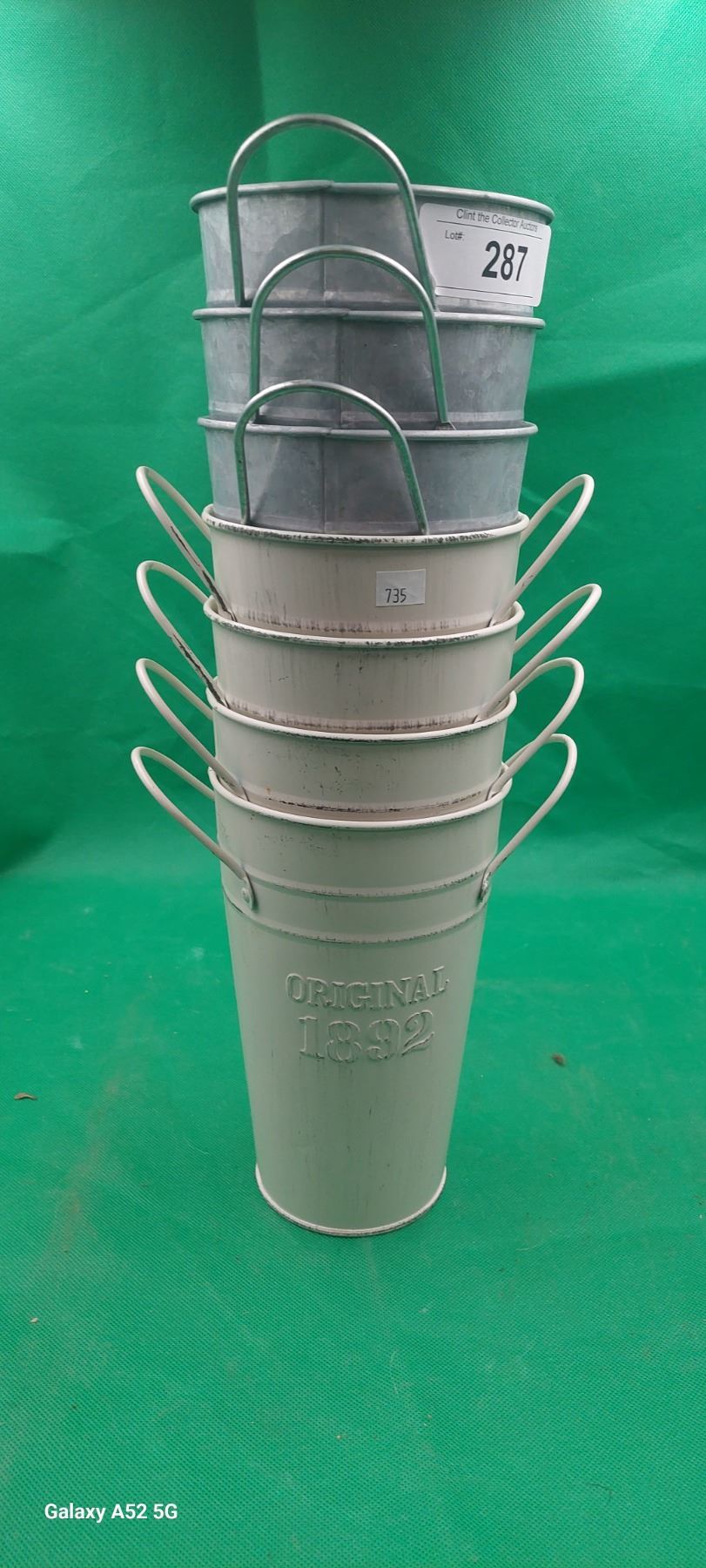 7 original "1892" wine galvenized buckets