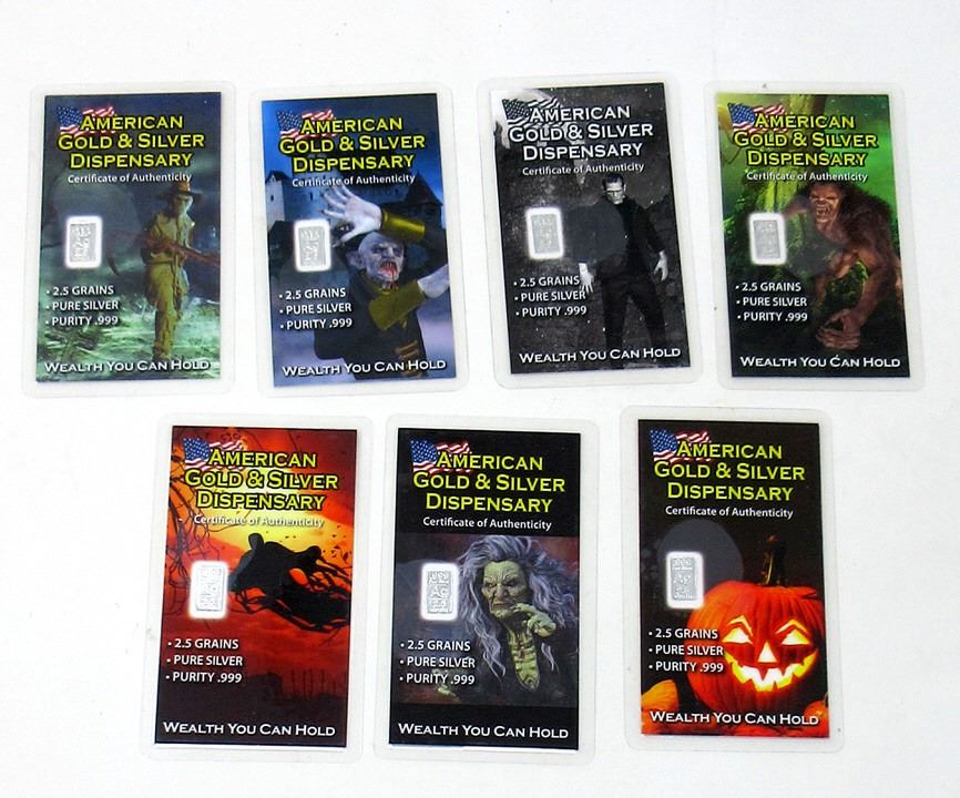 Total 17.5 Grains. Sealed in Assay Cards. Set of 7 Halloween 2021 motifs. Tax exempt