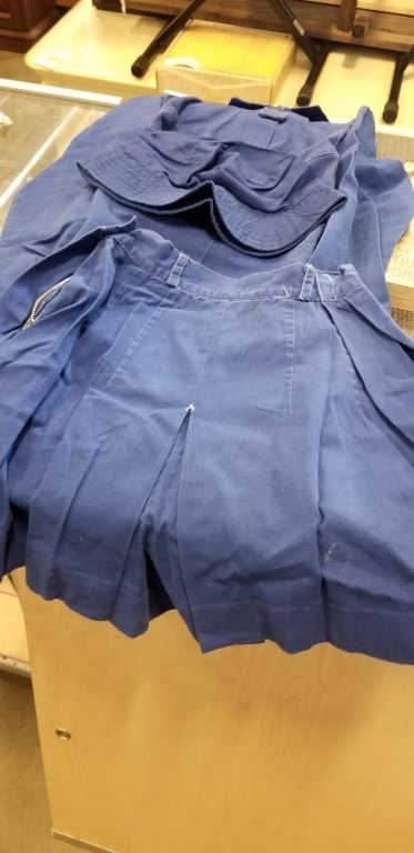 70'S GIRLGUIDE UNIFORM WITH CAP, BOOK, PINS AND WHISTLE