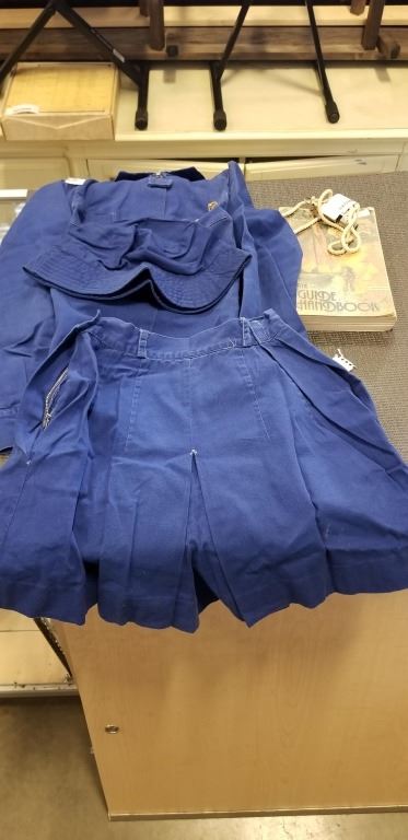 70'S GIRLGUIDE UNIFORM WITH CAP, BOOK, PINS AND WHISTLE