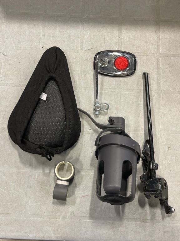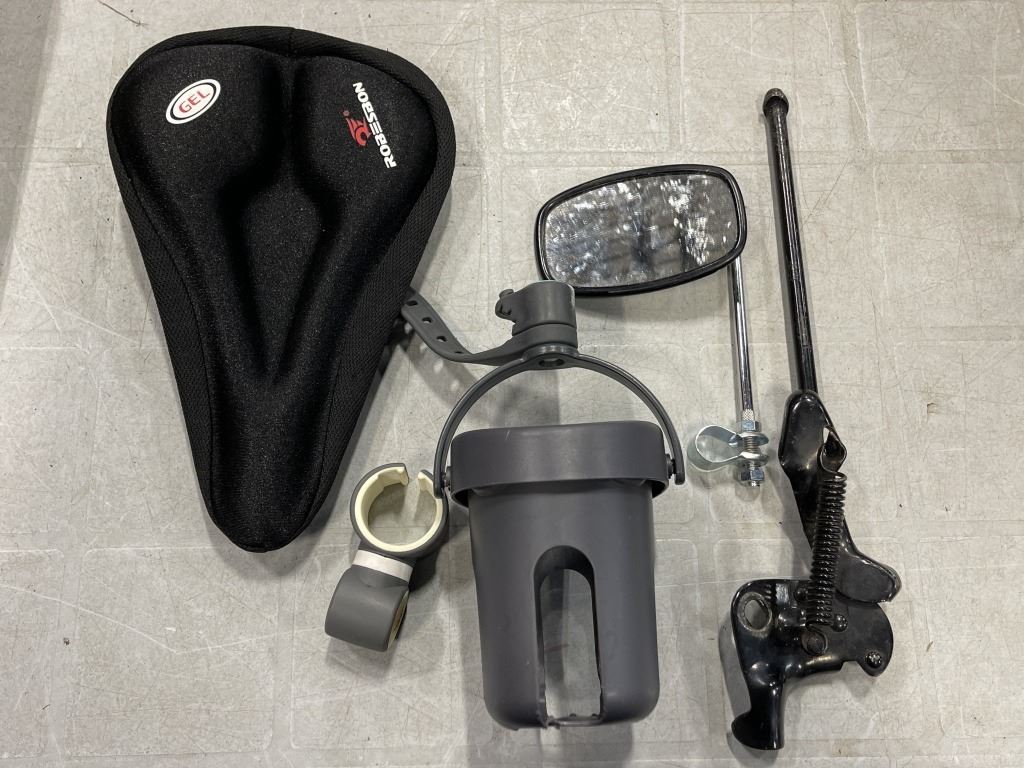 70'S NORCO SADDLE BAG, BANANA SEAT, ASSORTED BIKE ITEMS, KICKSTAND ETC