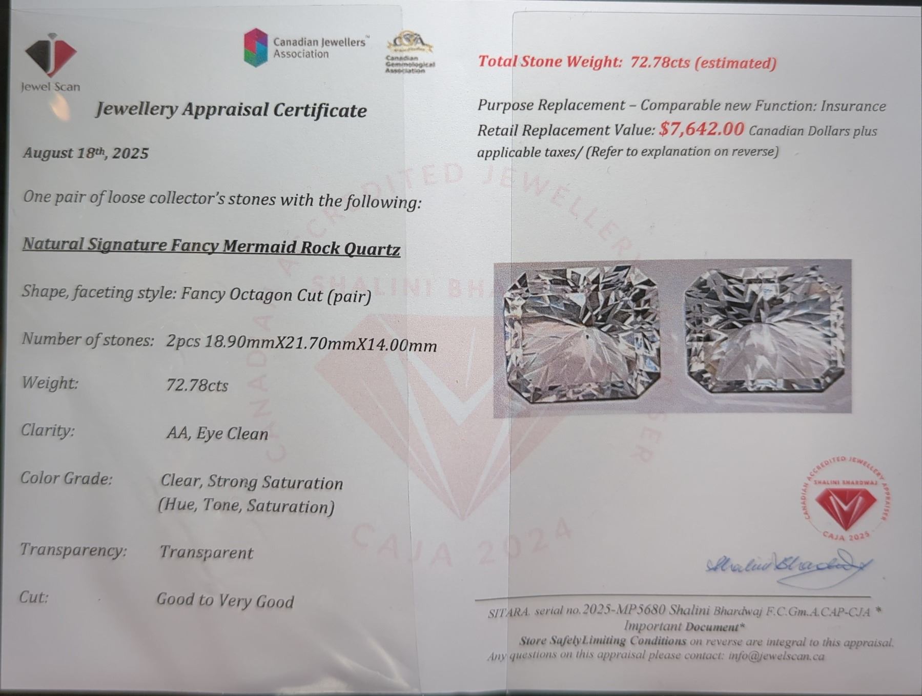 72.78 ct Certified Mermaid Quartz gemstone Pair ($7,642 Appraisal)