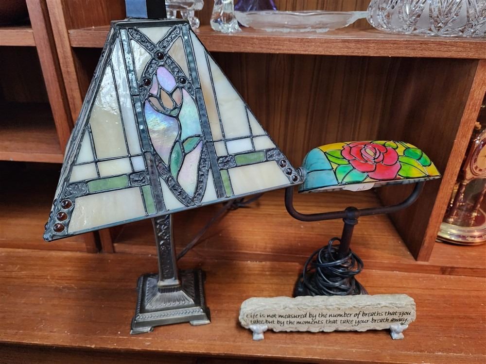 2 Small Tiffany Style Lamps, - Most Items have not been tested - Viewing Recommended- 17% Buyer Fee. Payment Processed through Live Auction World ( Visa or Master Card ) pick up Wednesday