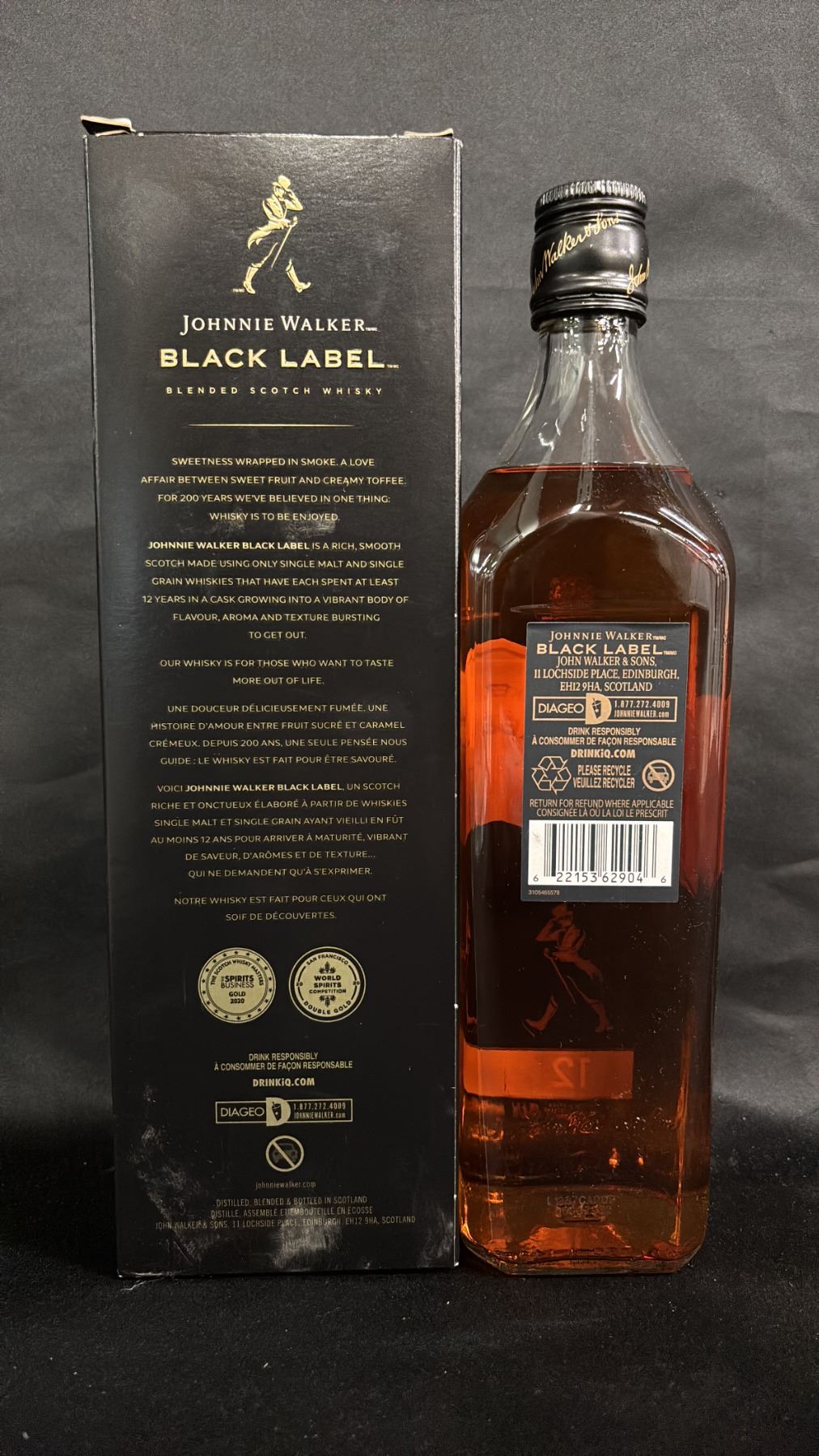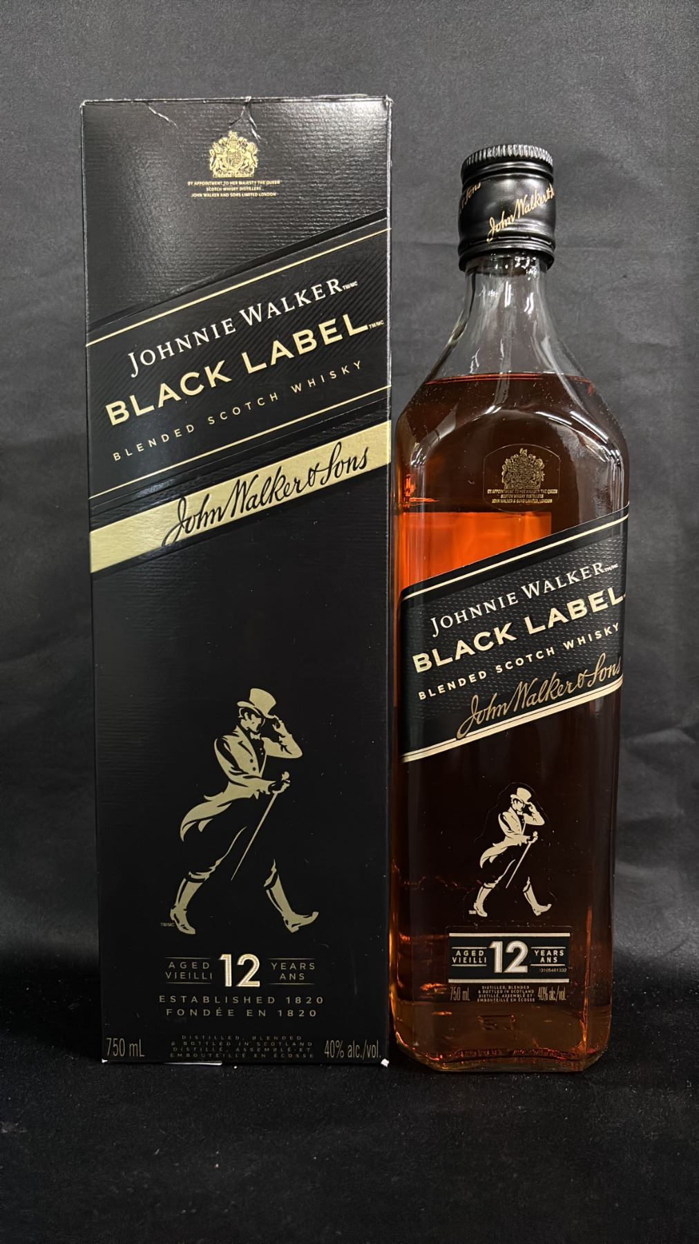 750 ML BOTTLE OF JOHNNIE WALKER BLACK LABEL BLENDED SCOTCH WHISKY - SEALED BOTTLE IN BOX