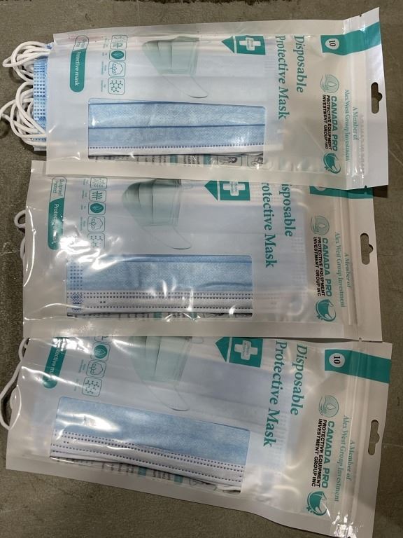 750 NEW PACKAGES OF DISPOSABLE FACE MASKS,. 75 PACKS OF 10