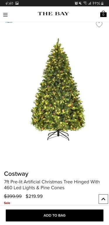 7ft Pre-lit Artificial Christmas Tree Hinged With 460 Led Lights & Pine Cones
