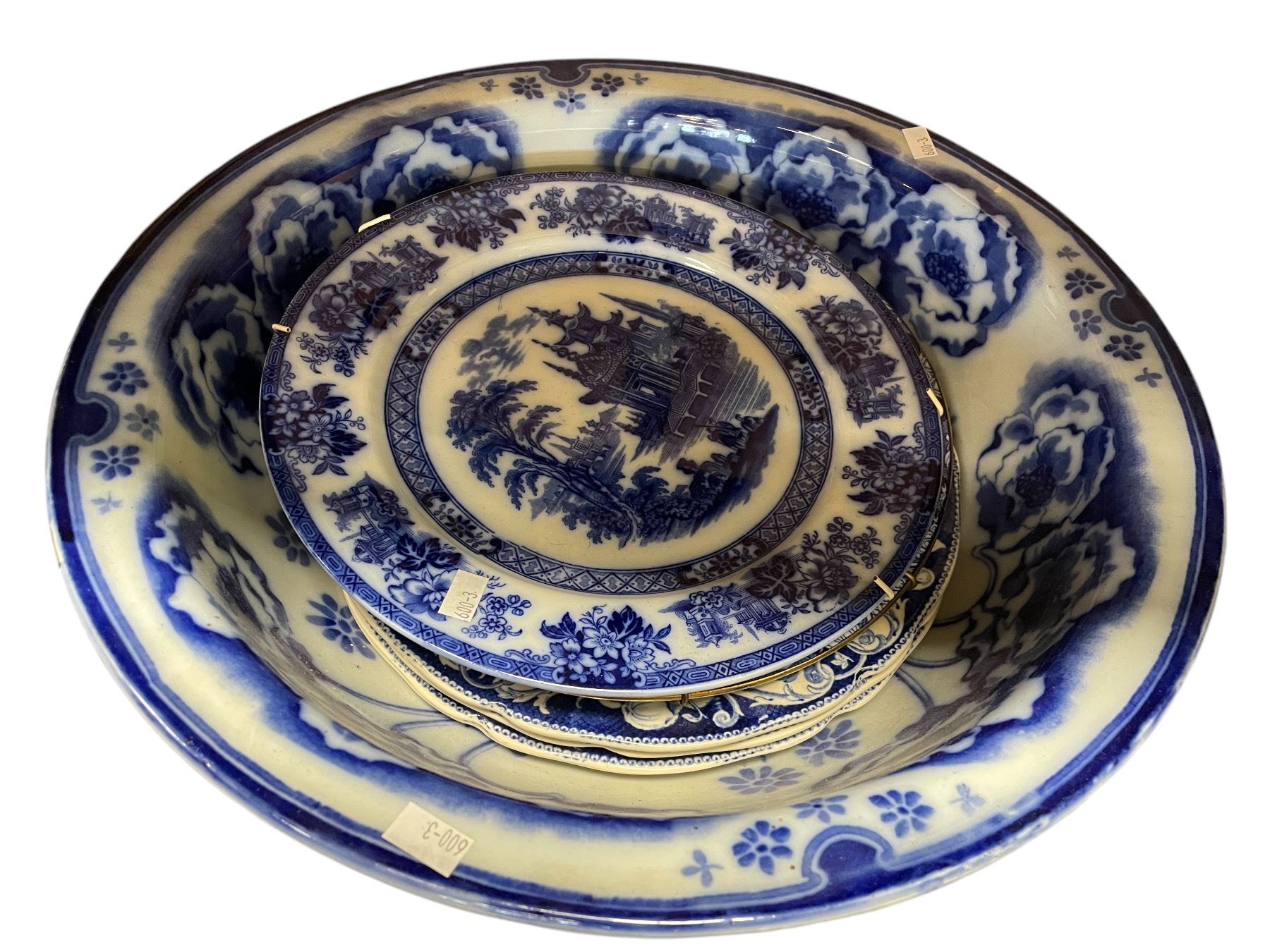 7pcs Of Vintage Blue White Royal Doulton & Doulton Lambeth Porcelain Ware (Bowl & Plates)