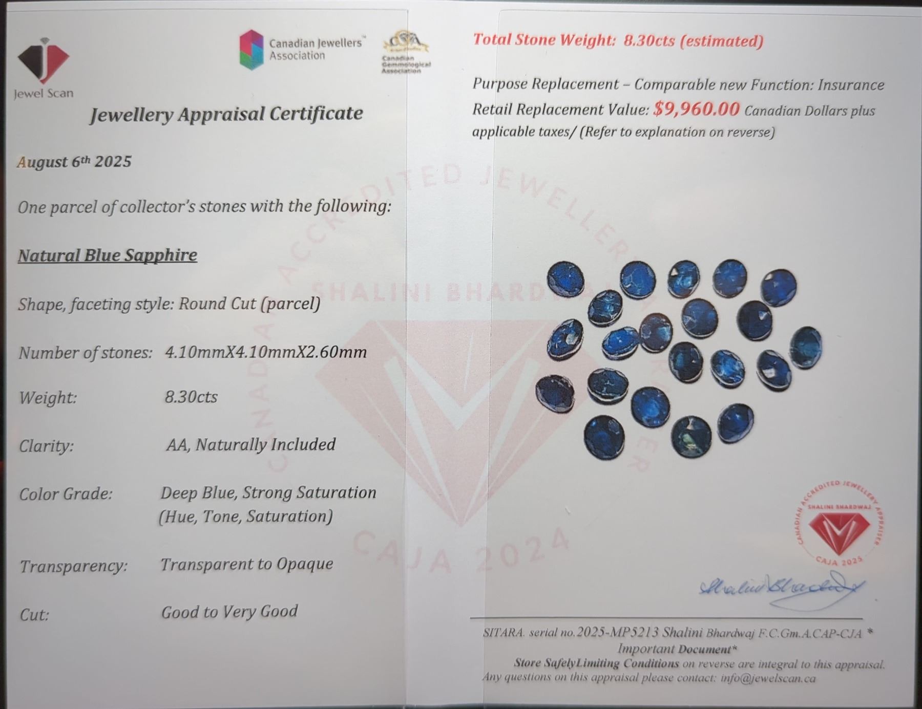 8.3 ct Certified Blue Sapphire gemstone ($9,960 Appraisal)