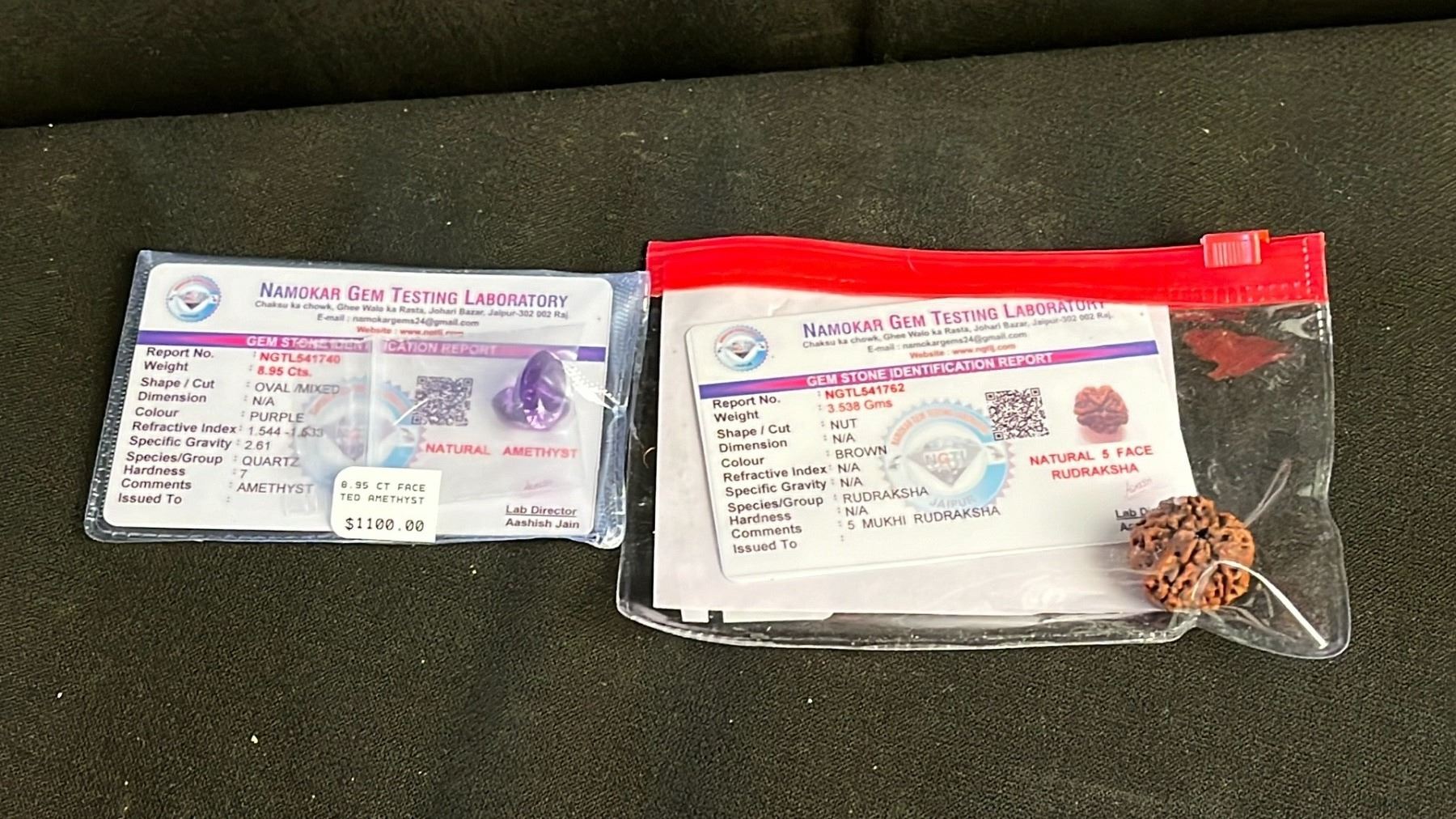 8.95XT FACETED AMETHYST RETAIL $1100, AND RUDRAKSHA 5 FACE RETAIL $400