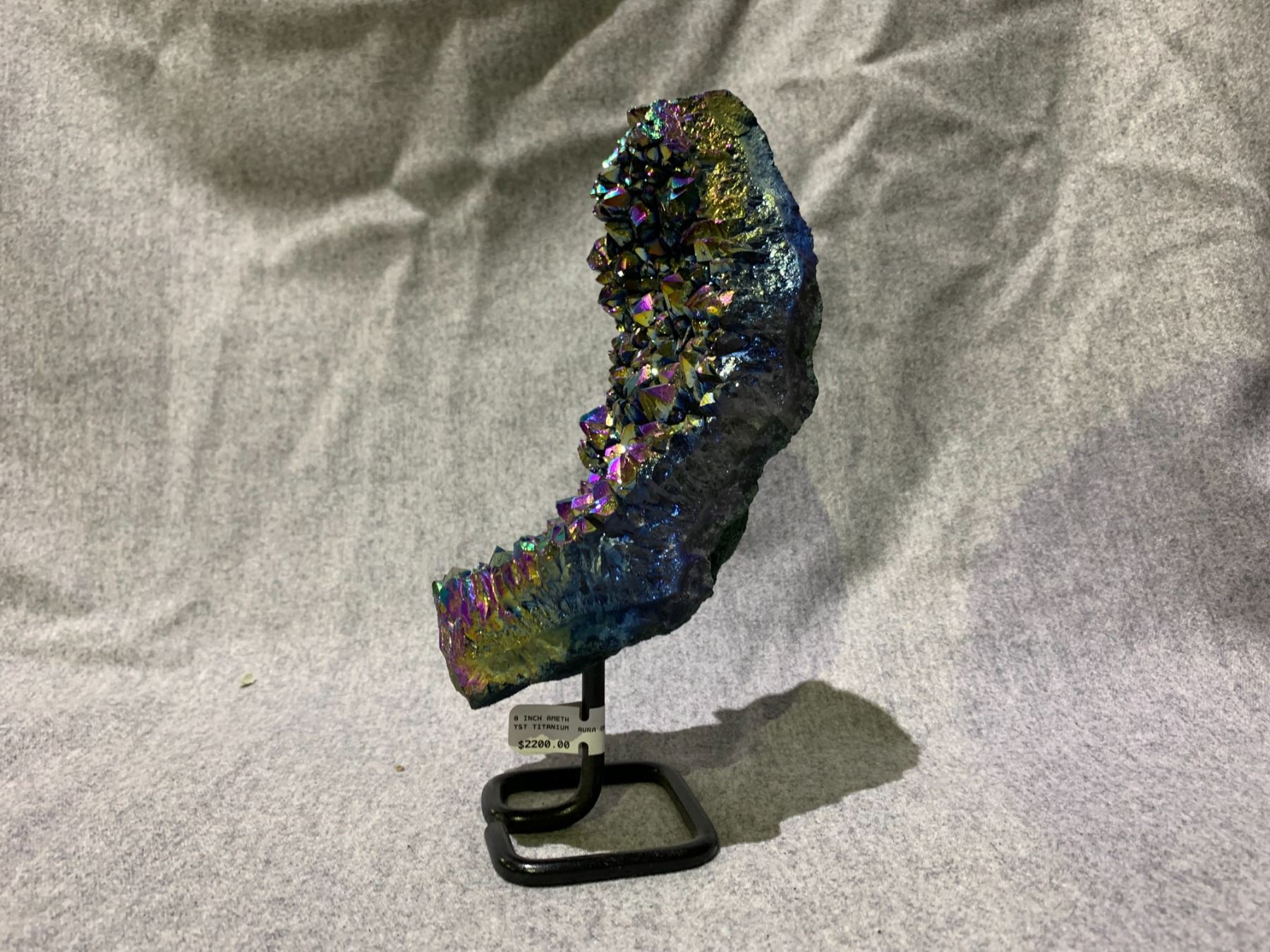 8" AMETHYST TITANIUM AURA ON METAL STAND RETAIL $2,200