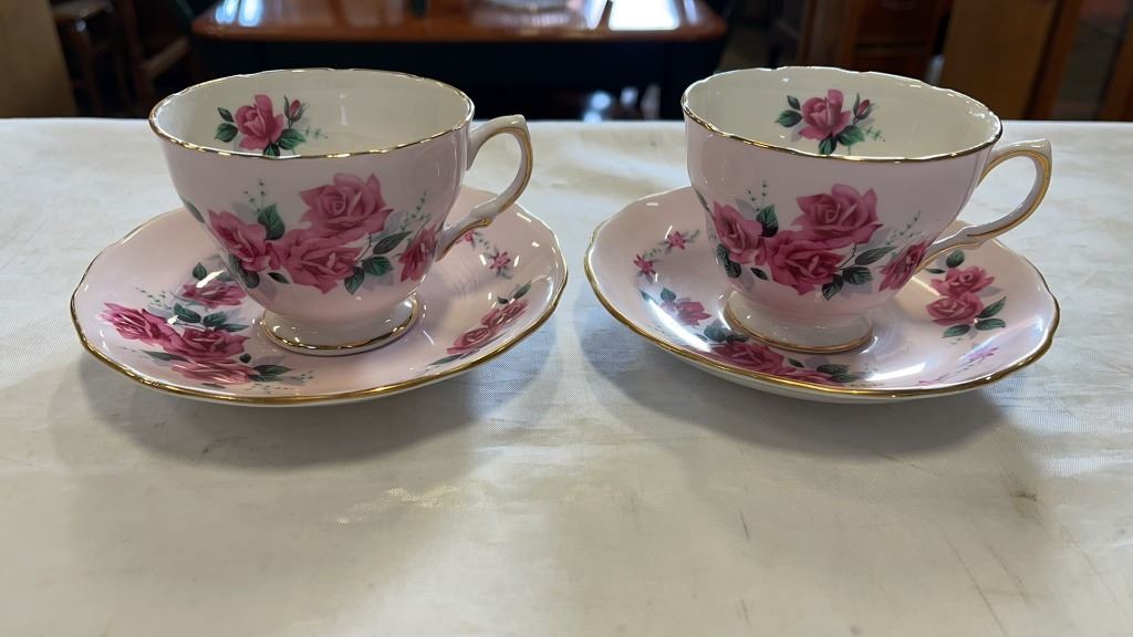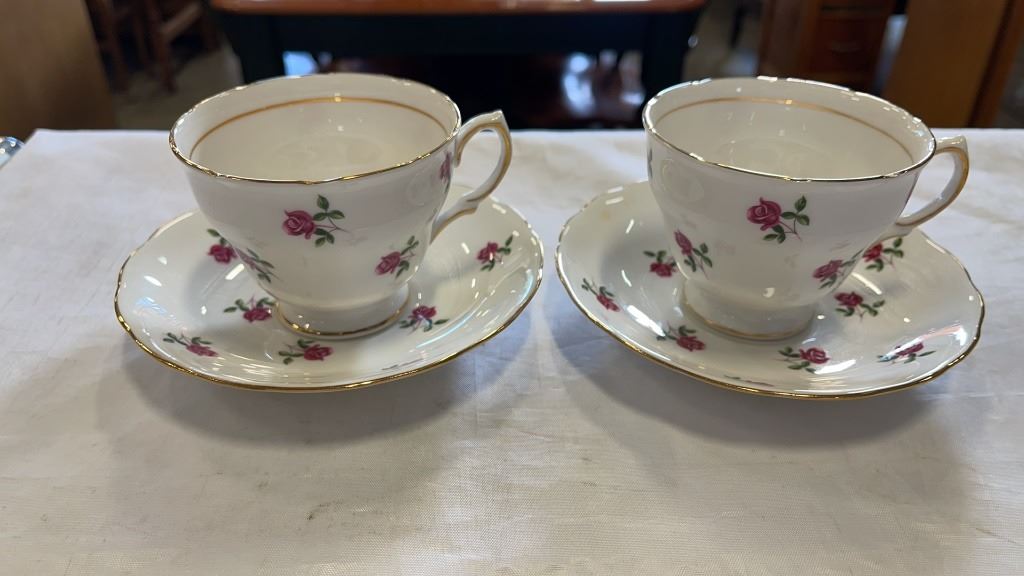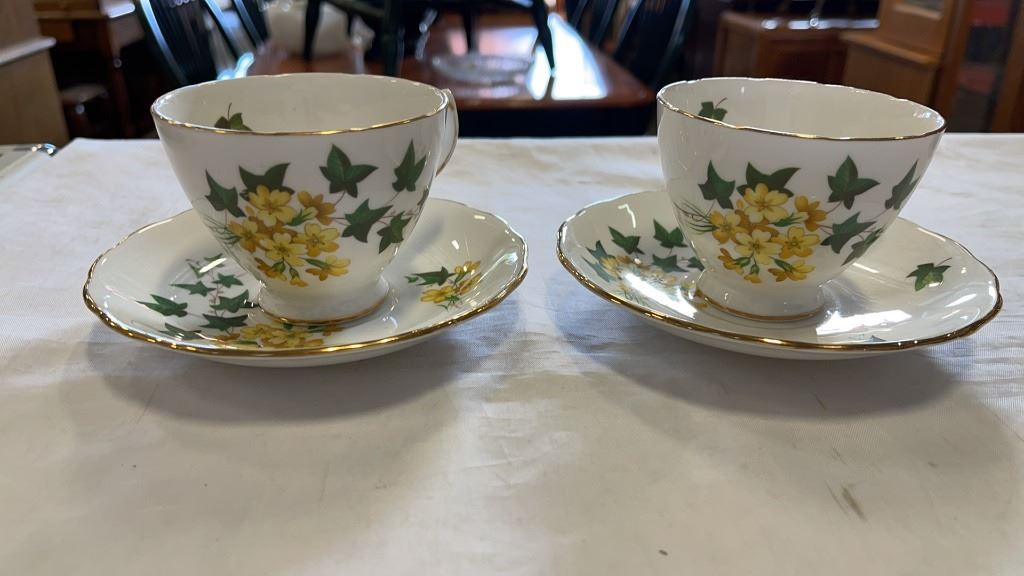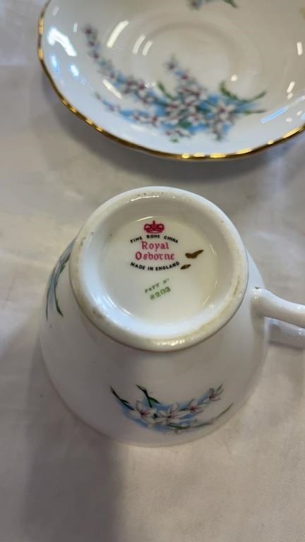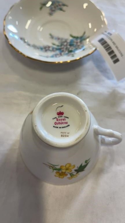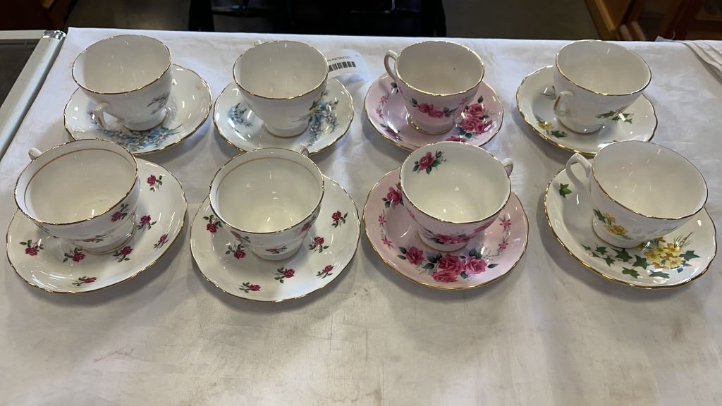 8 ASSORTED CUPS AND SAUCERS - COLCLOUGH AND ROYAL OSBORNE - 1 MIX MATCH CUP/SAUCER