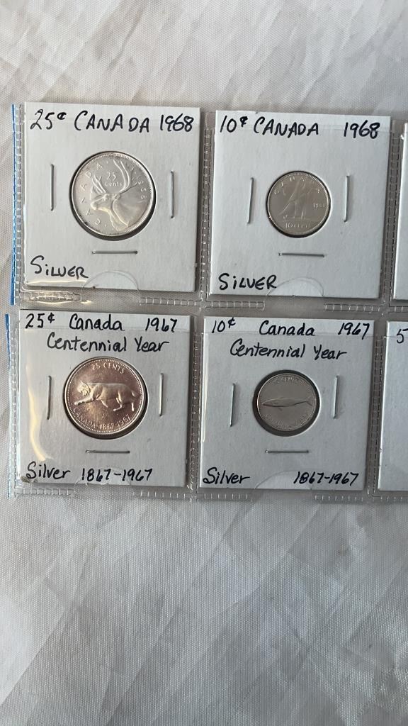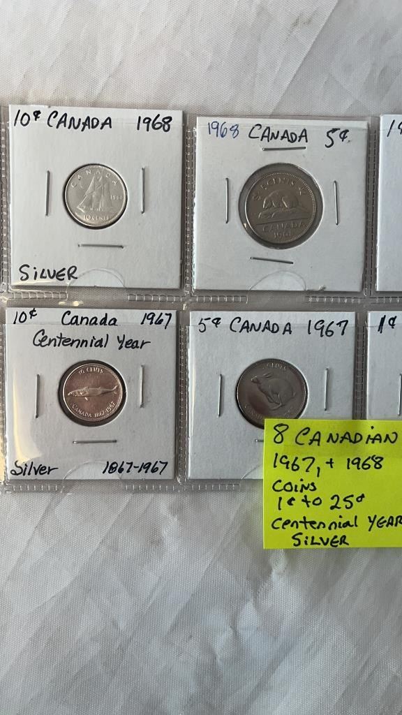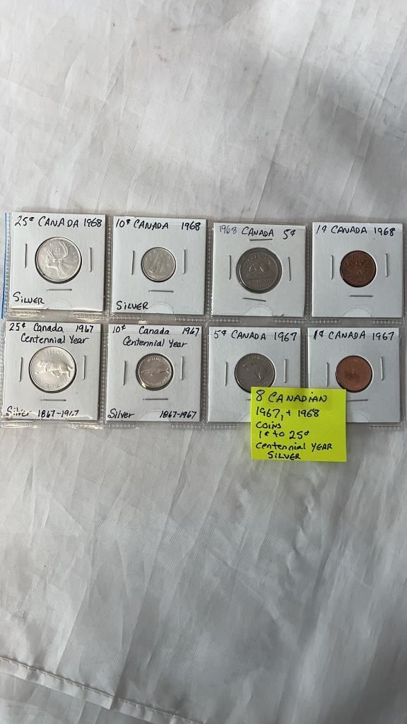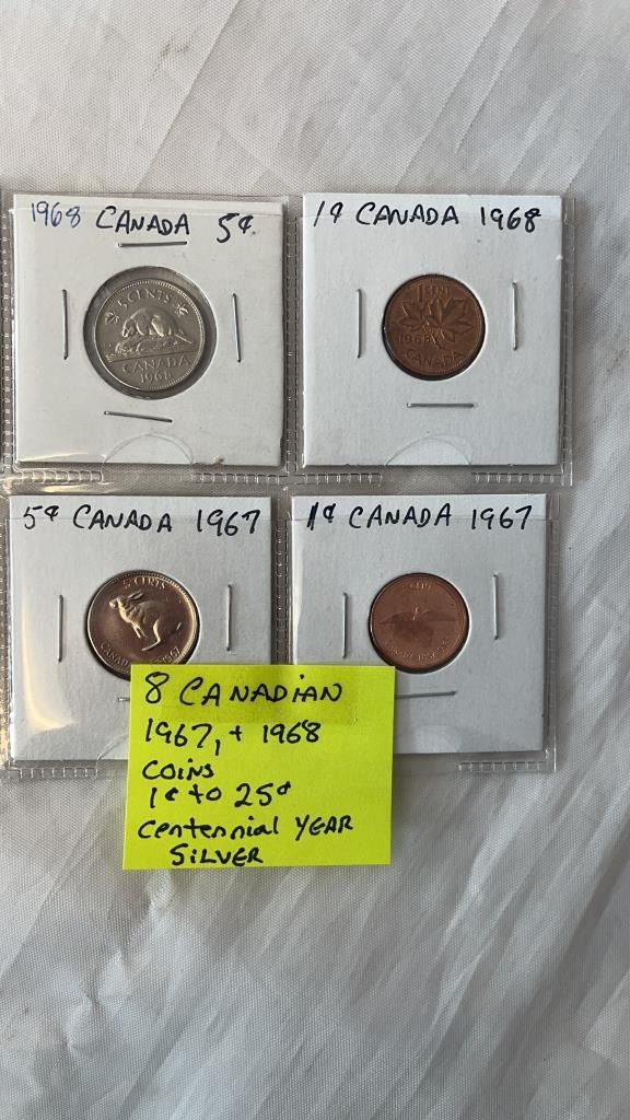 8 CANADIAN COINS 1 CENT TO 25 CENT - 1967, 1968