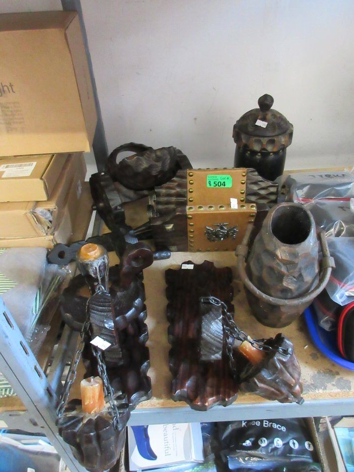 Candle wall sconces, lidded container, letter holder, wine bottle holder and more.