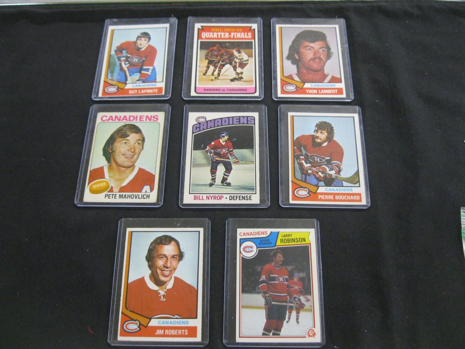 GUY LAPOINTE, 1973-74 NHL QUARTER FINALS, YVON LAMBERT, PETE MAHOVLICH, BILL NYROP, PIERRE BOUCHARD, JIM ROBERTS & LARRY ROBINSON