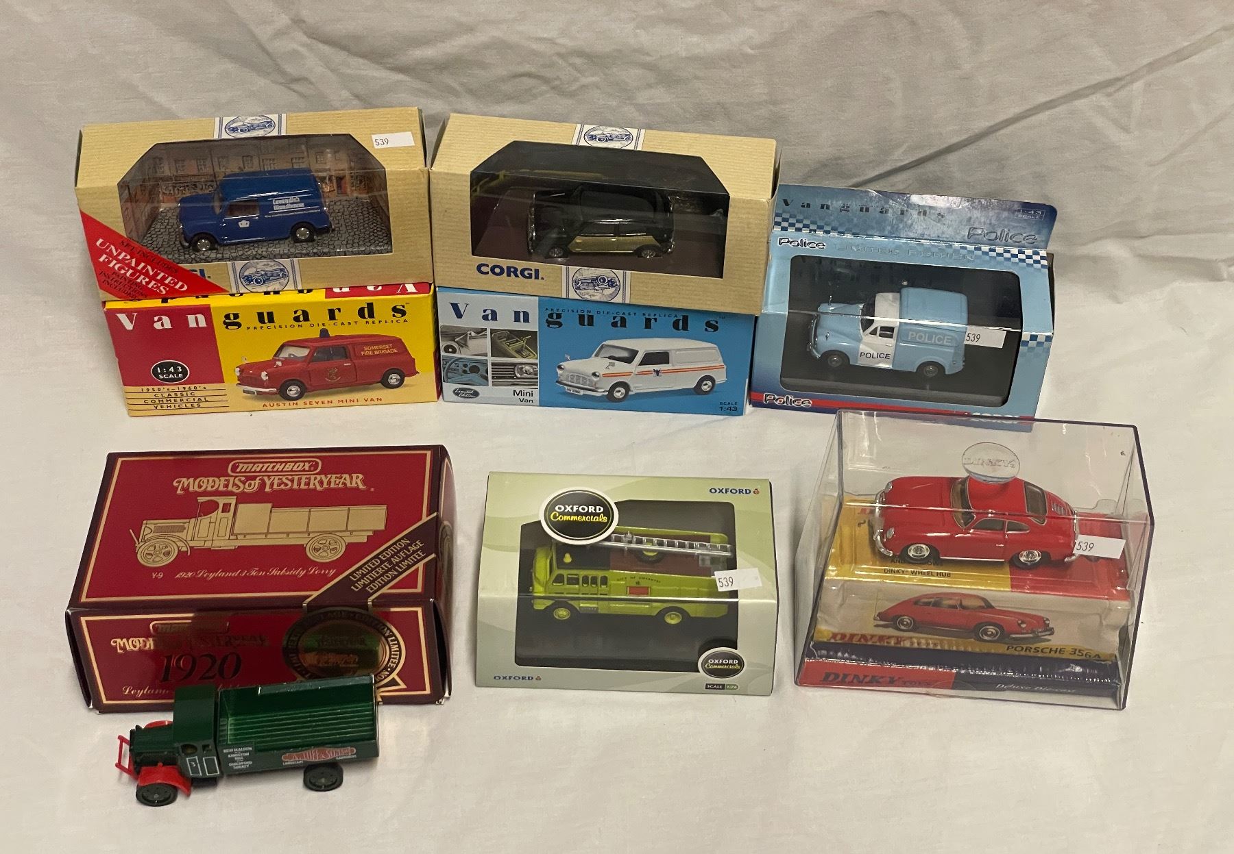 8 Miniature Die Cast Cars In Original Boxes, Oxford, Corgi, Vanguard, Etc..