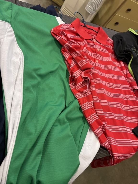 8 NEW GOLF SHIRTS - NIKE, WICKED WARE, BISHOP AND BRODY