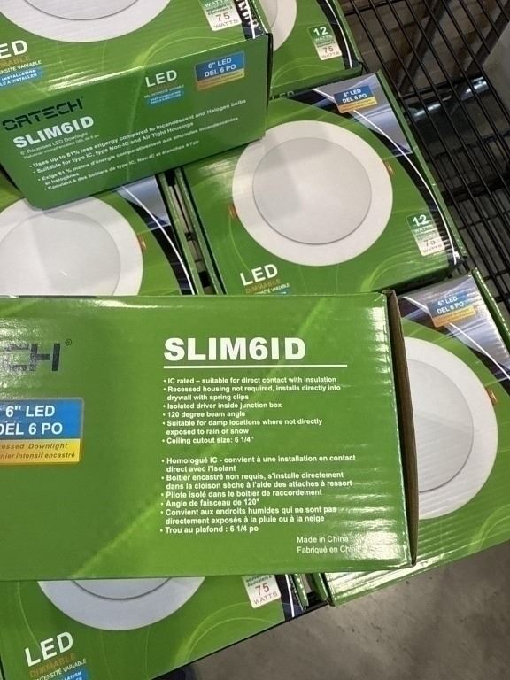 8 NEW ORTECH 6 INCH LED RECESSED DOWNLIGHTS, DIMMABLE WITH EASY INSTALL BOXES INCLUDED, 700 LUMENS S