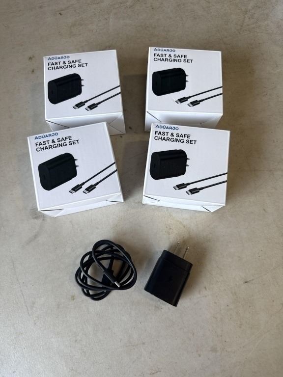 8 NEW TYPE C FAST CHARGER SETS, 2 WALL PLUGS AND 2 TYPE C CORDS PER BOX, 8 TOTAL SETS