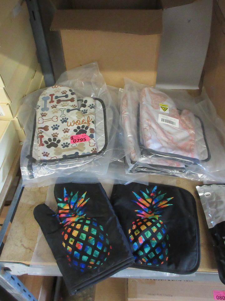 1 Oven mitt & 1 pot holder per set. Assorted designs & colours,