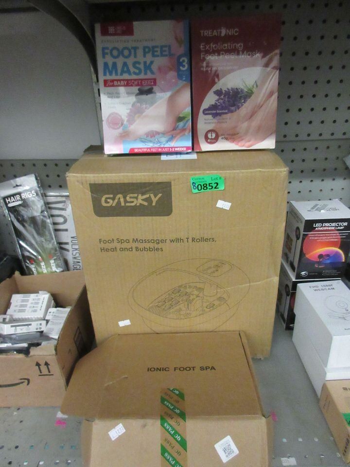 Heated foot spa with rollers, 6 packages of Lavender foot masks, and 1 Hydrosana Ionic Detox machine.