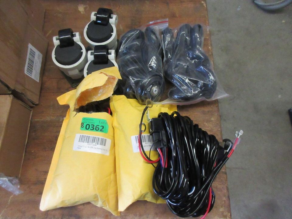 3 Dolly wheels, 2 packages of inline skate wheels, and 2 light bar wiring harnesses.