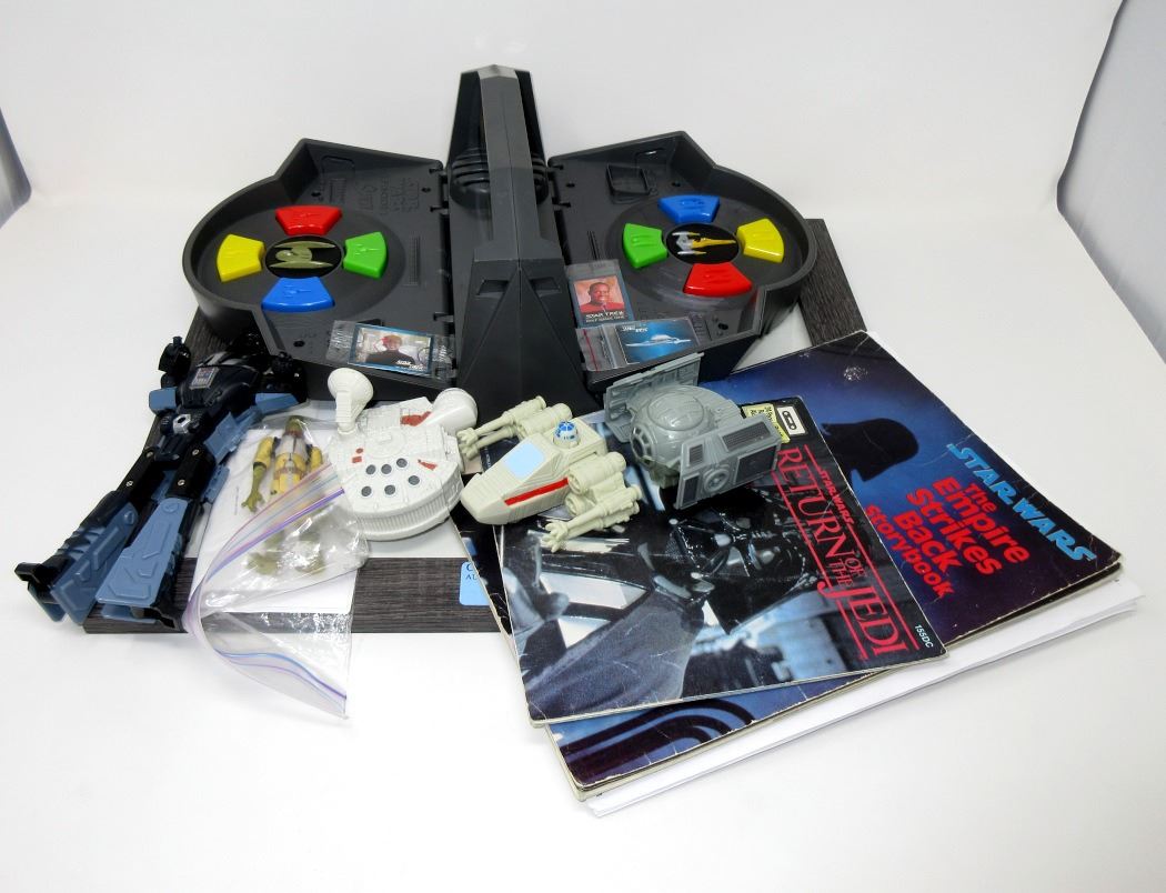 Star Wars Simon Game, 3 Skybox Star Trek Mini Cards, Bossk Bounty Hunter figure and more.