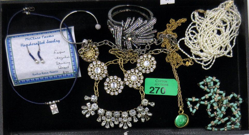 J Crew, Fossil, Monet, Allen Schwartz clapper bracelet, Lapis necklace & earring set, freshwater necklace and bracelet.