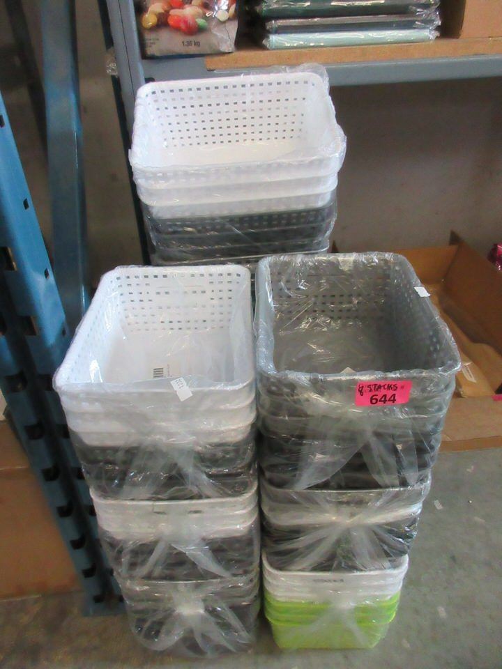 Baskets measure 8" x 10" x 4" deep. Approximately 18 baskets per stack.