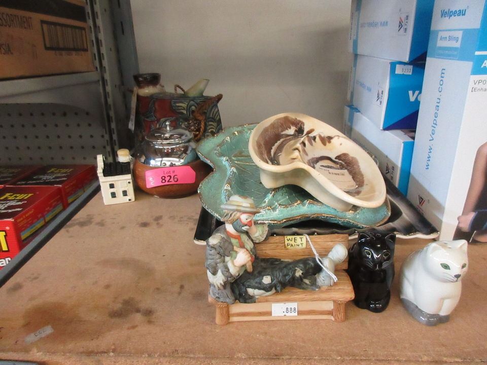 Teapot, ashtrays, figurines