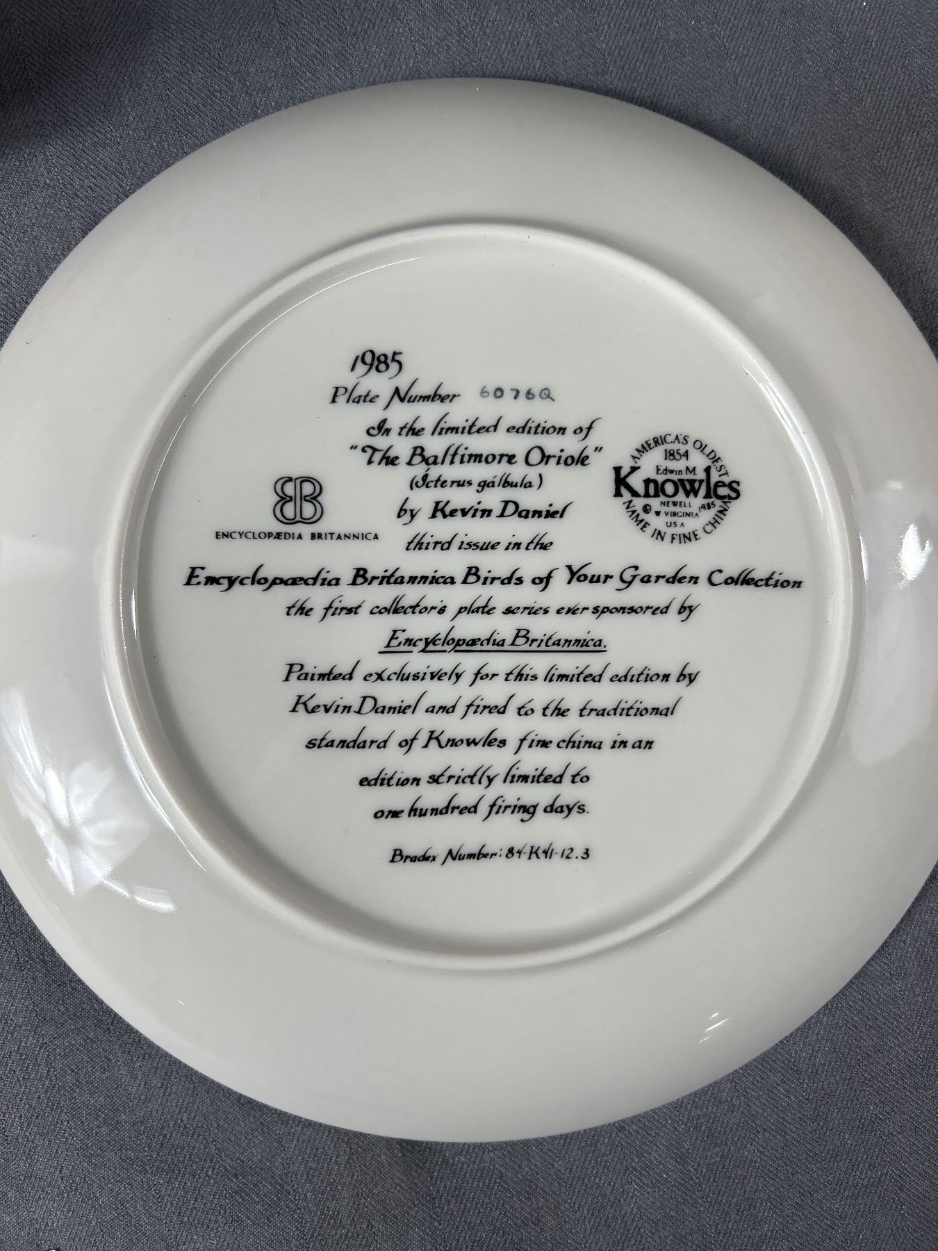 8 Vintage Knowles Fine China Birds Collector Plates w/ C.O.A.