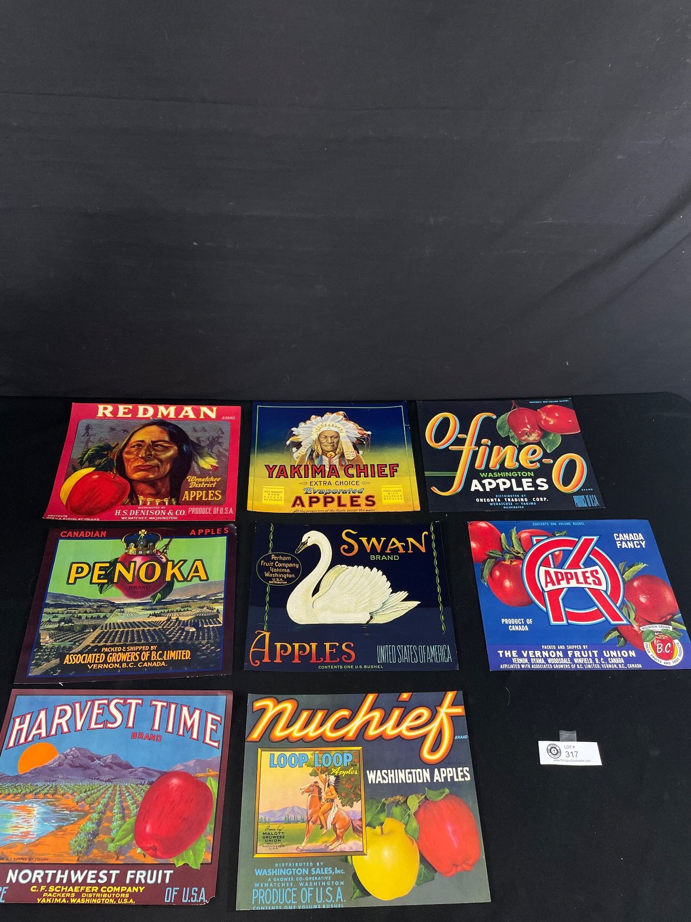 8 Vintage Produce Labels. Most Approx. 9" x 10"