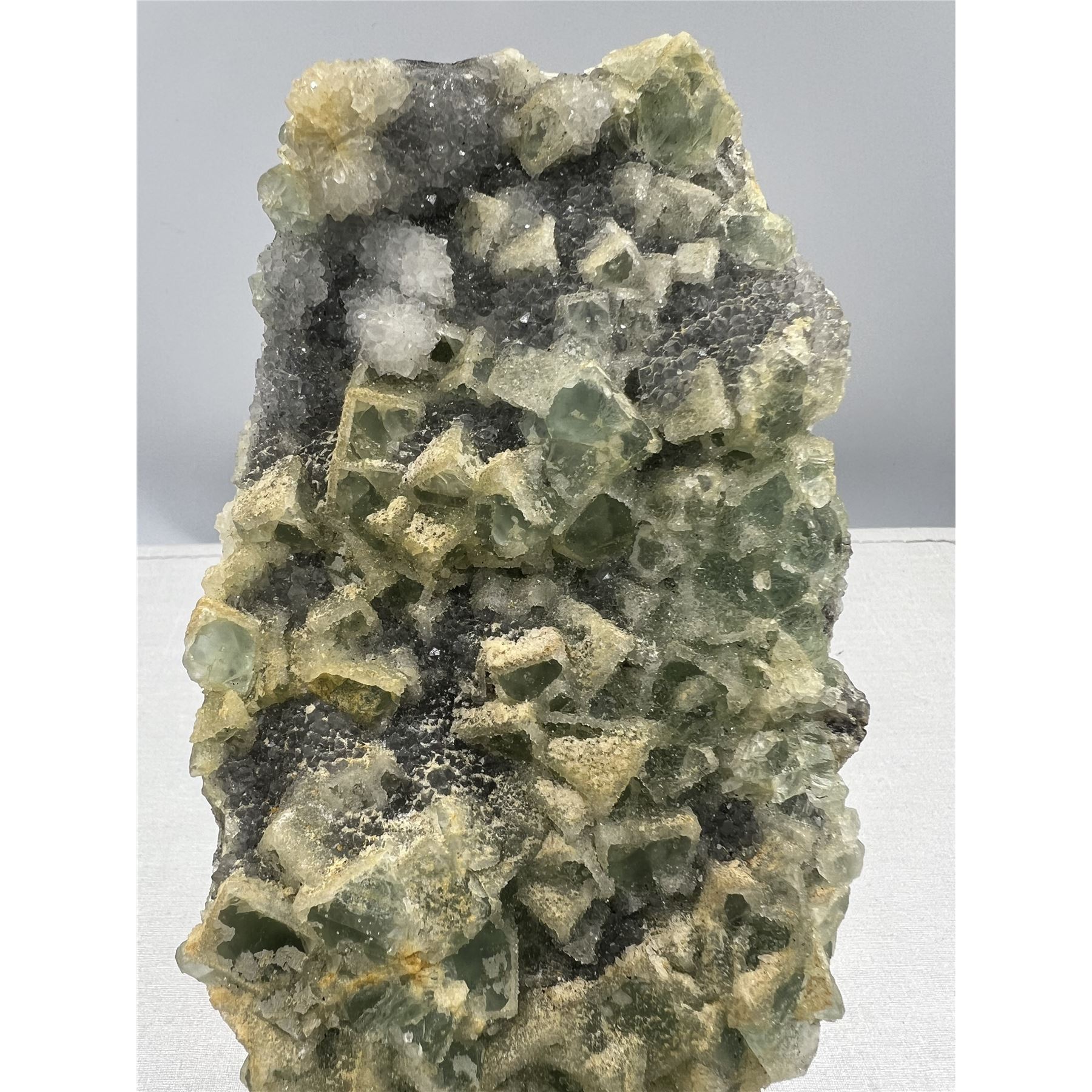 8 X 4 INCH GREEN SUGAR FLUORITE WITH CALCITE ON STAND