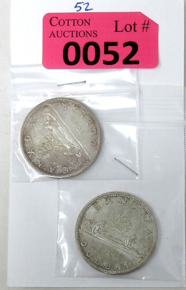 80 % Silver 1963 & 1966 Canadian Canoe Dollars
