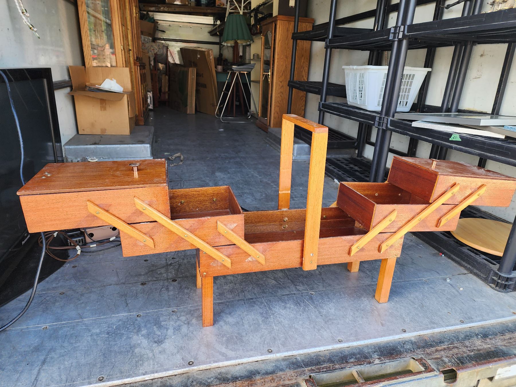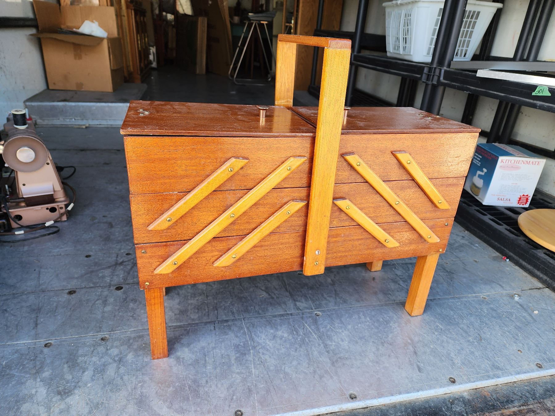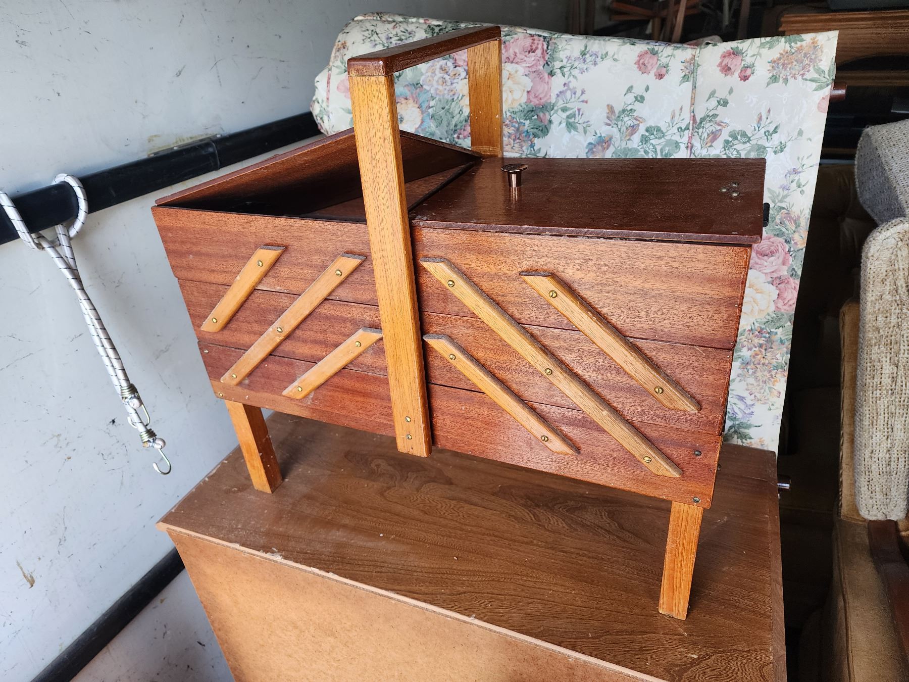 805 -- VINTAGE HARDWOOD SEWING BOX/ STORAGE CONTAINER