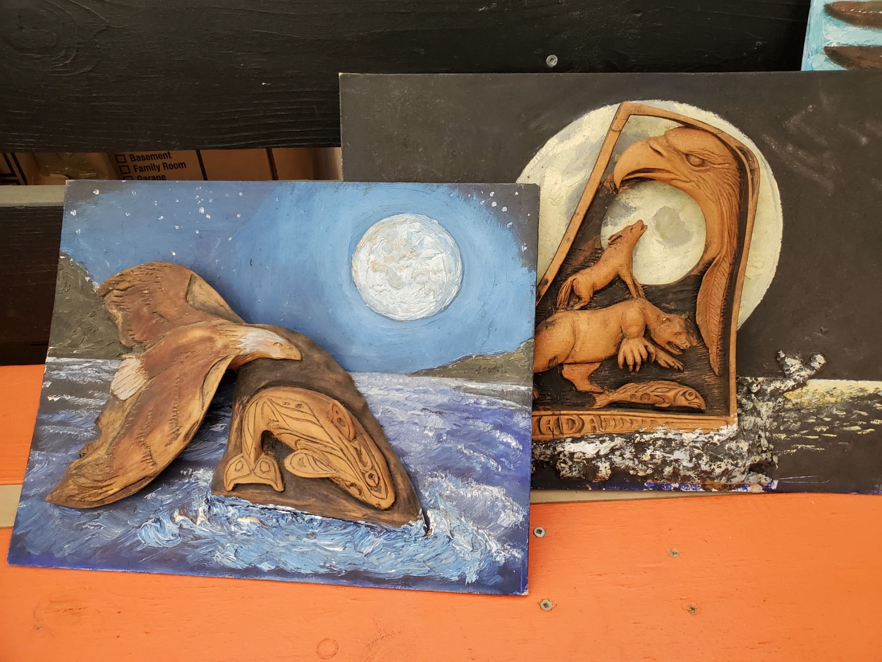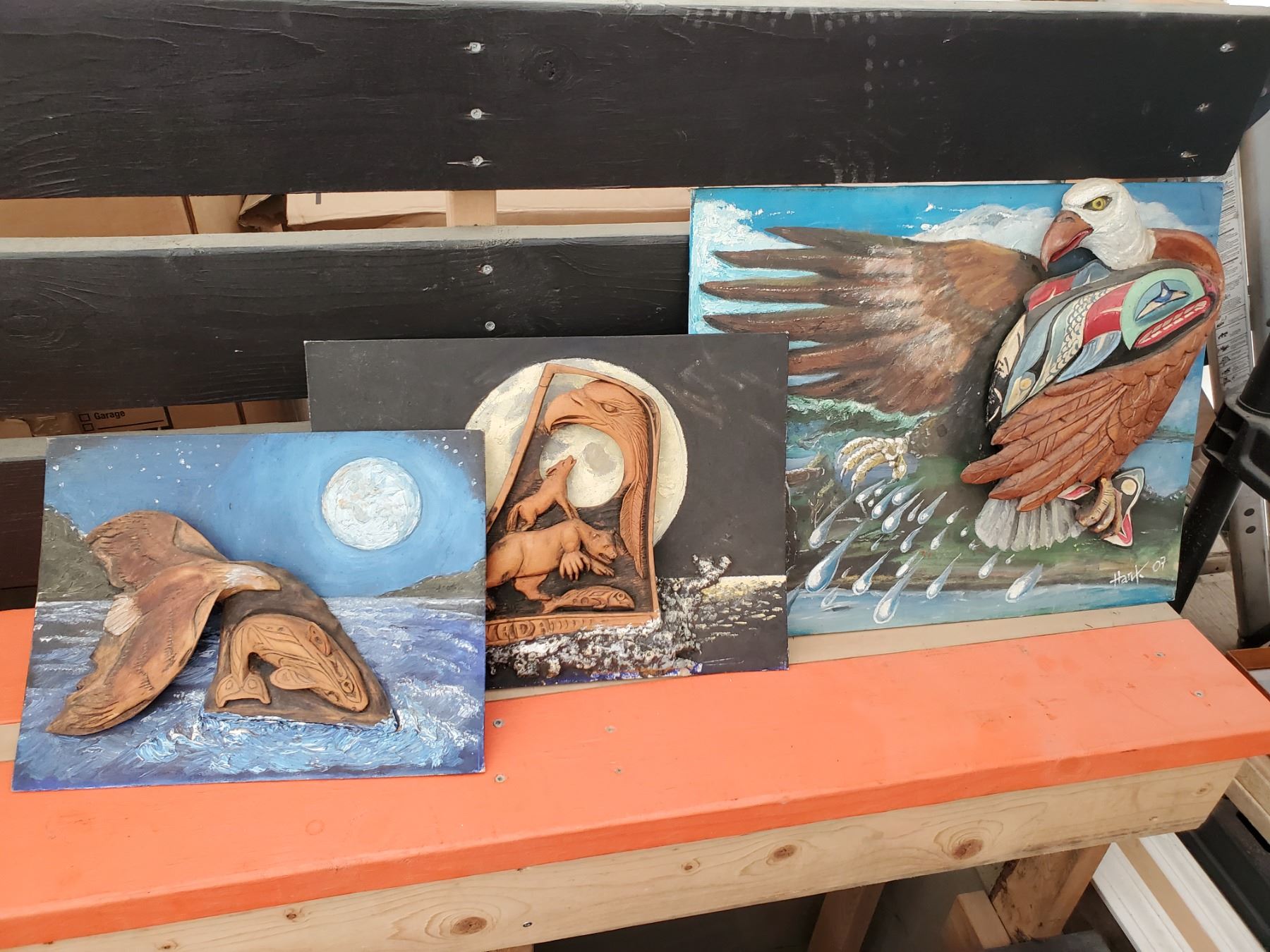 Three paint & Wood Sculpture Native Art - 17% Buyer Fee. Payment Processed through Live Auction World ( Visa or Master Card ) pick up Saturday, or Tuesday