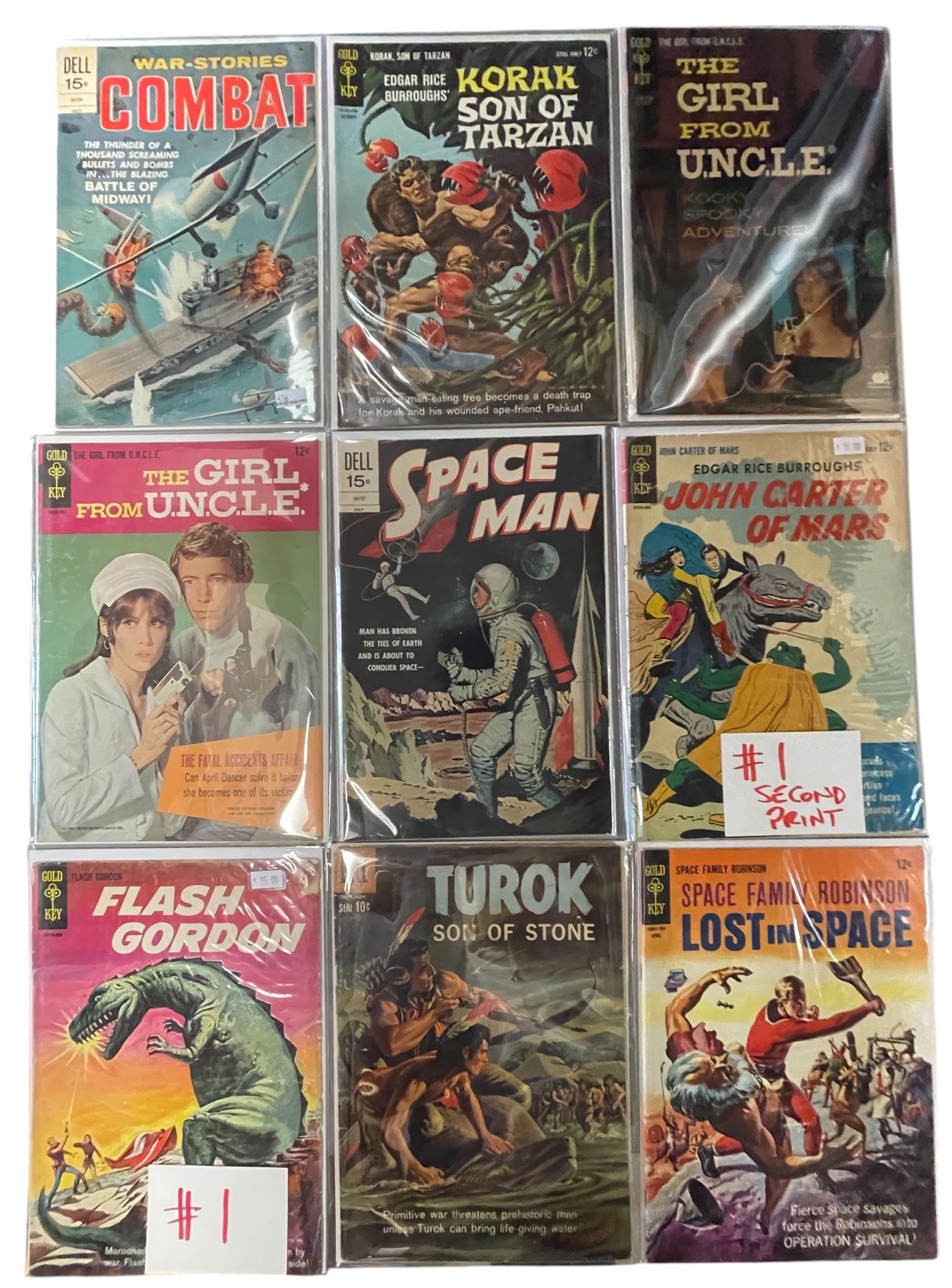 8x 1950s-1960s Comic Books: Combat, Korak Son Of Tarzan, The Girl From UNCLE, & More