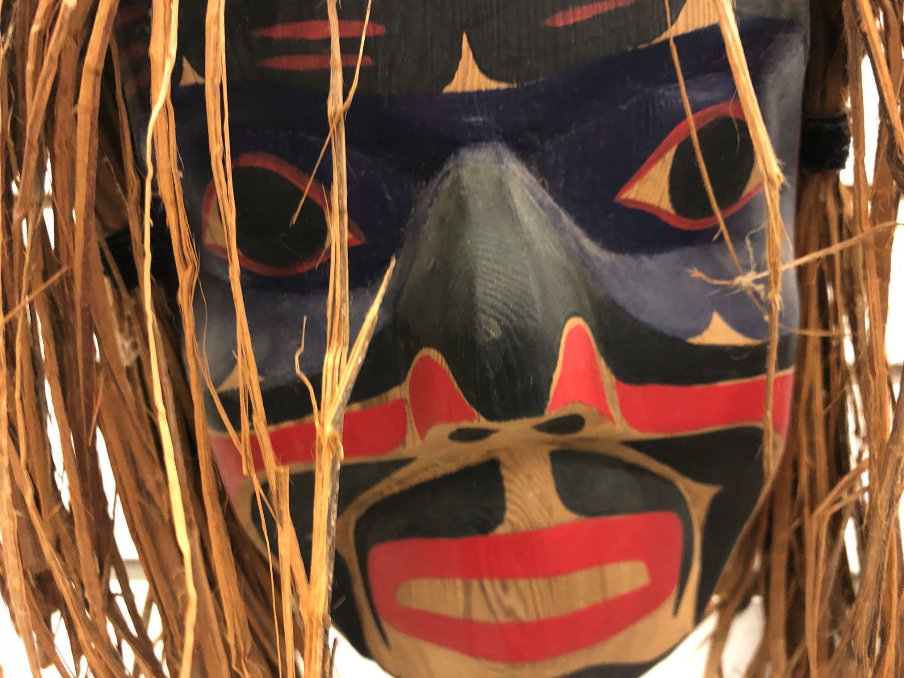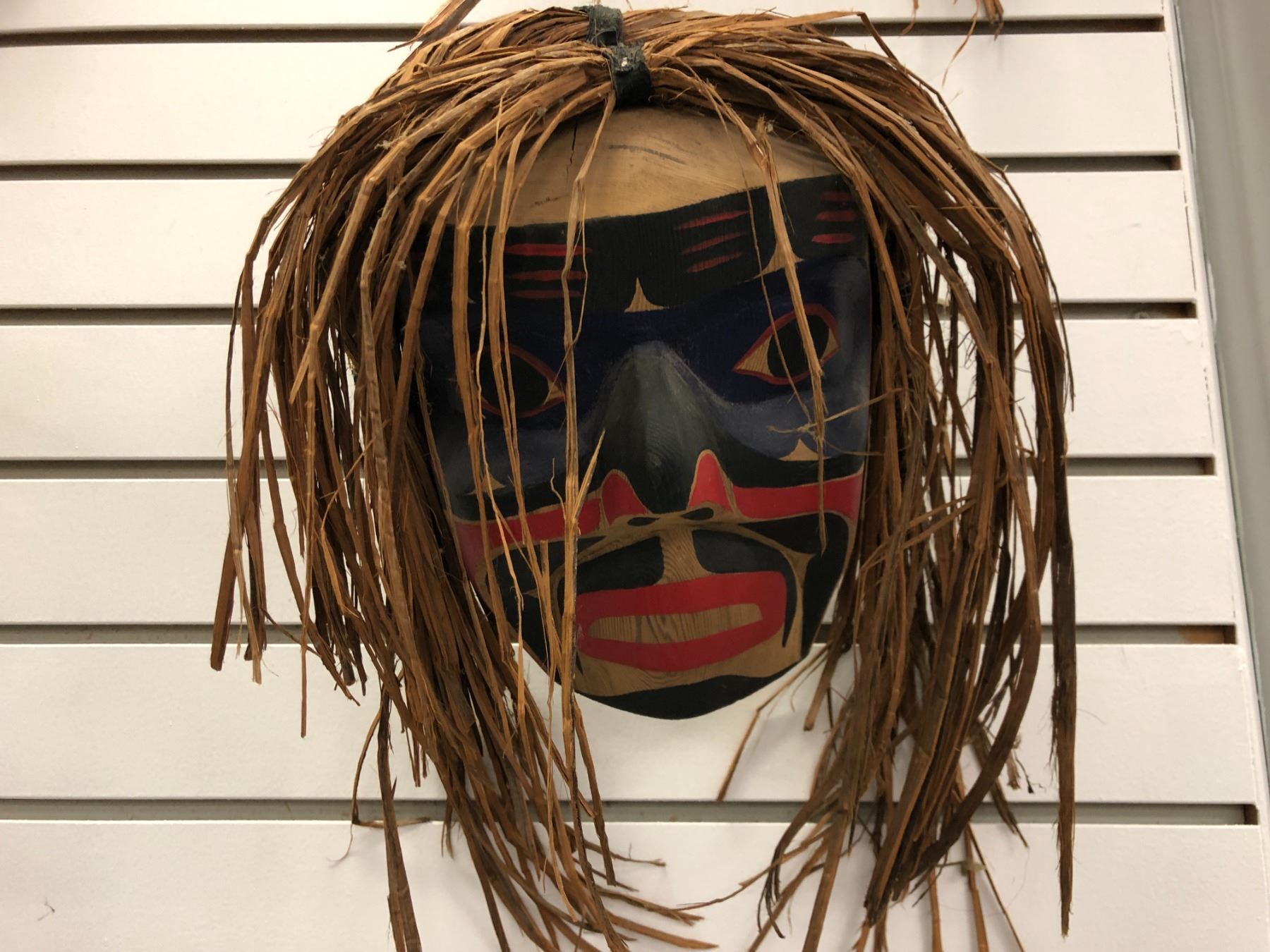 9 1/2in West Coast First Nations "Speaker Mask" w/ cedar bark hair