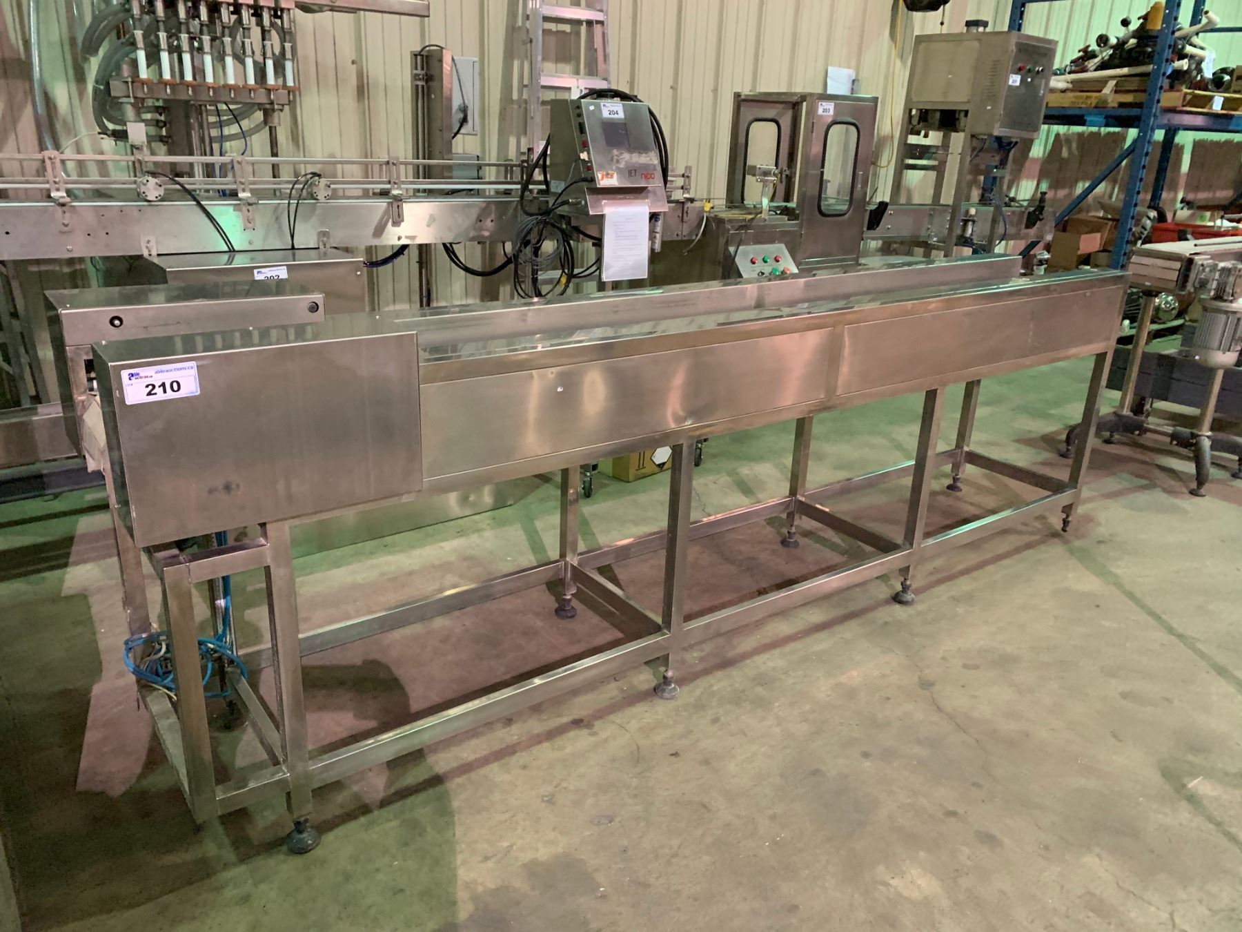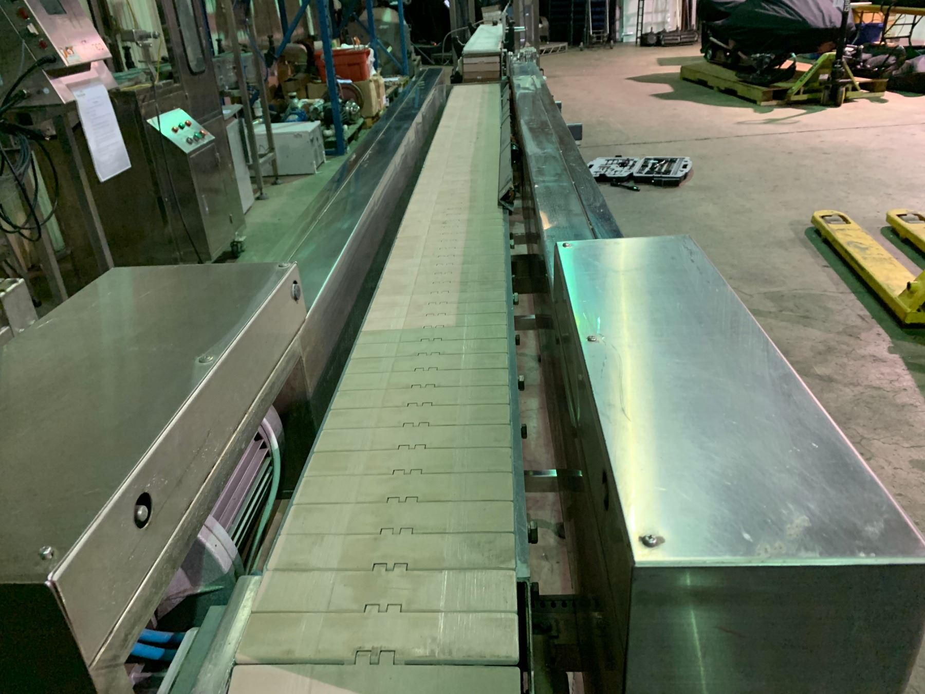 9'10" LONG 8" WIDE STAINLESS STEEL / PLASTIC POWERED FIRST LINE INSPECTION CONVEYOR SYSTEM