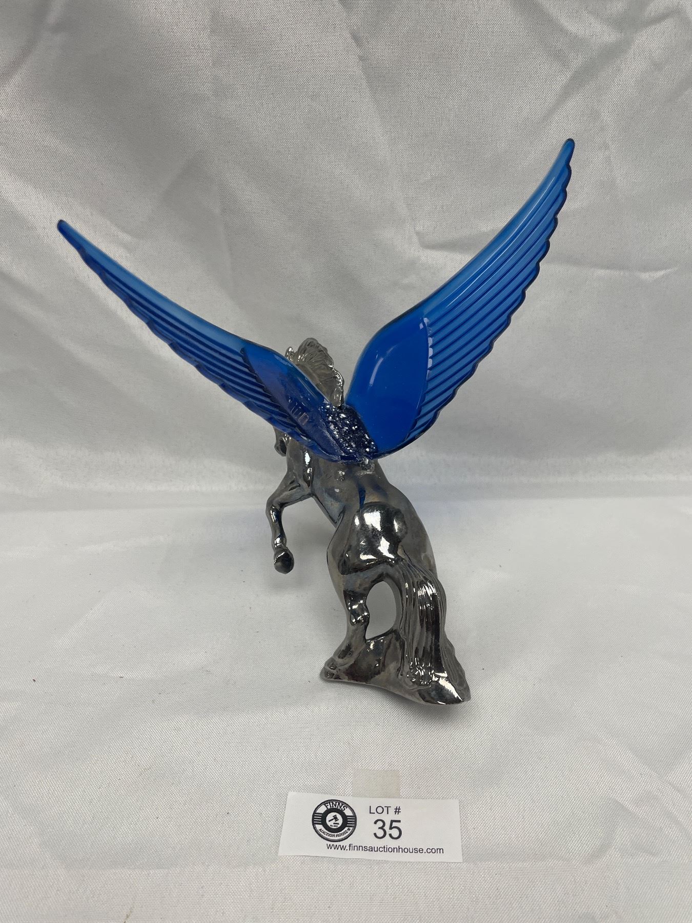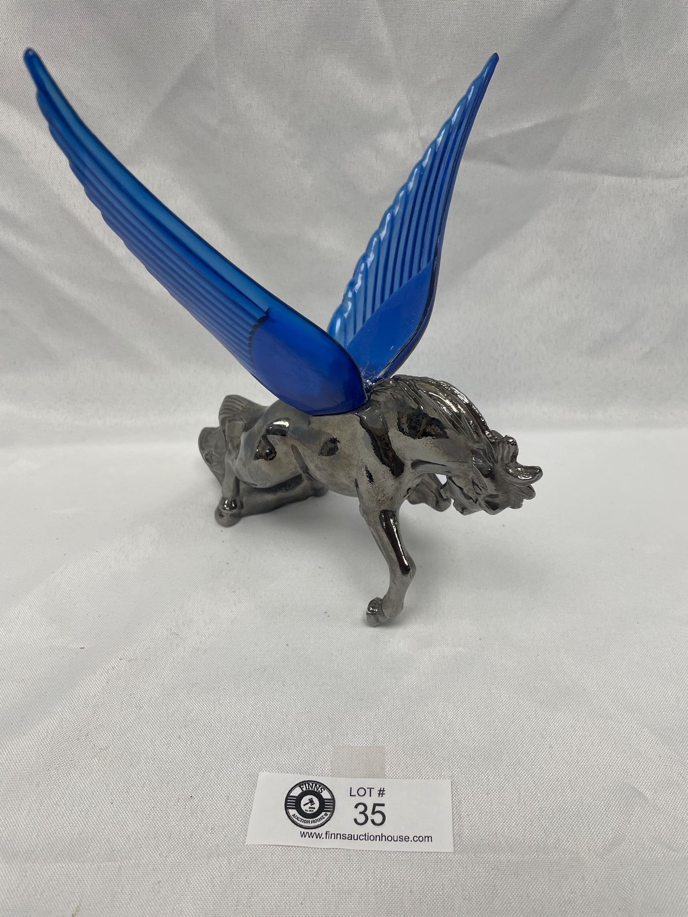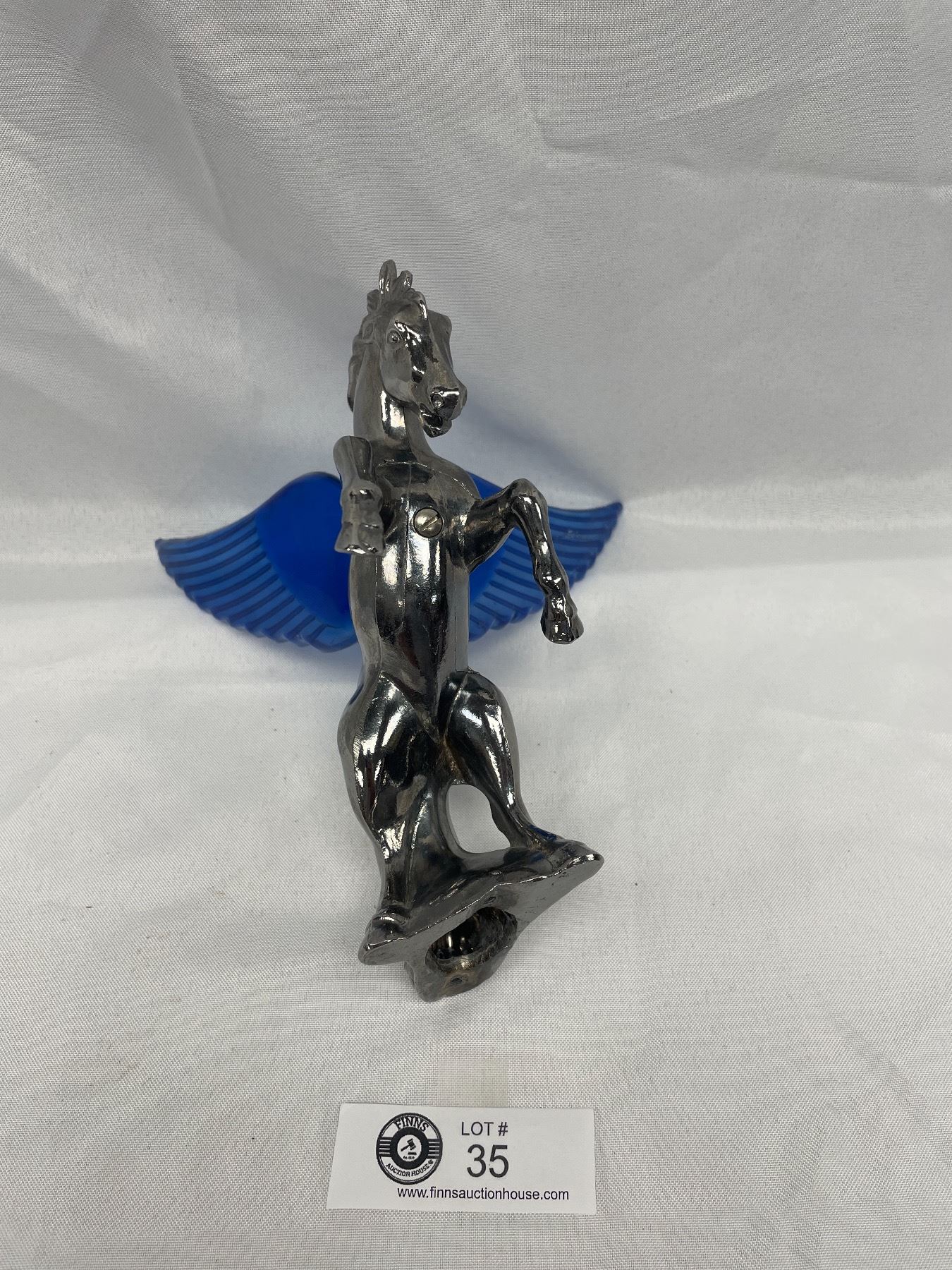 9.5 by 8 inches wide Chrome Hood Ornament Horse with Wings