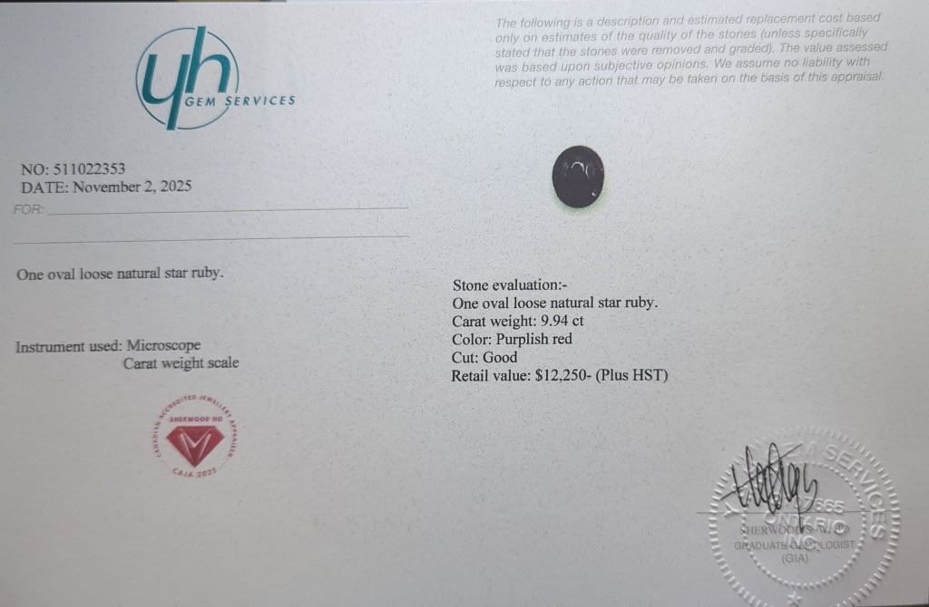 9.94 CT CERTIFIED BURMESE STAR RUBY GEMSTONE UNTREATED ($12,250 APPRAISAL)