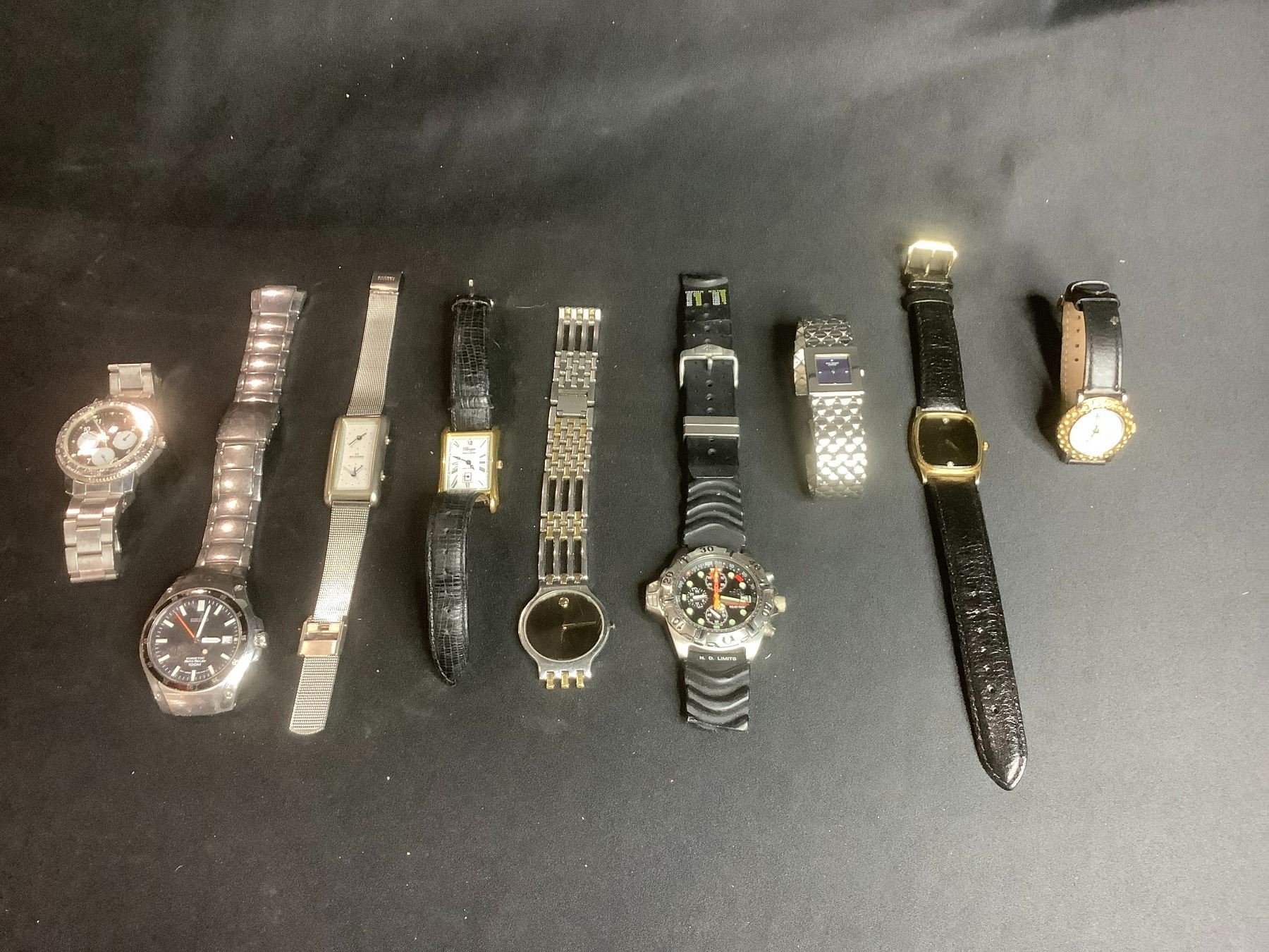 9 ASSORTED WATCHES (SOME NEED REPAIRS) BRANDS INCLUDE: CITIZEN, SEIKO, ESQ, & MORE
