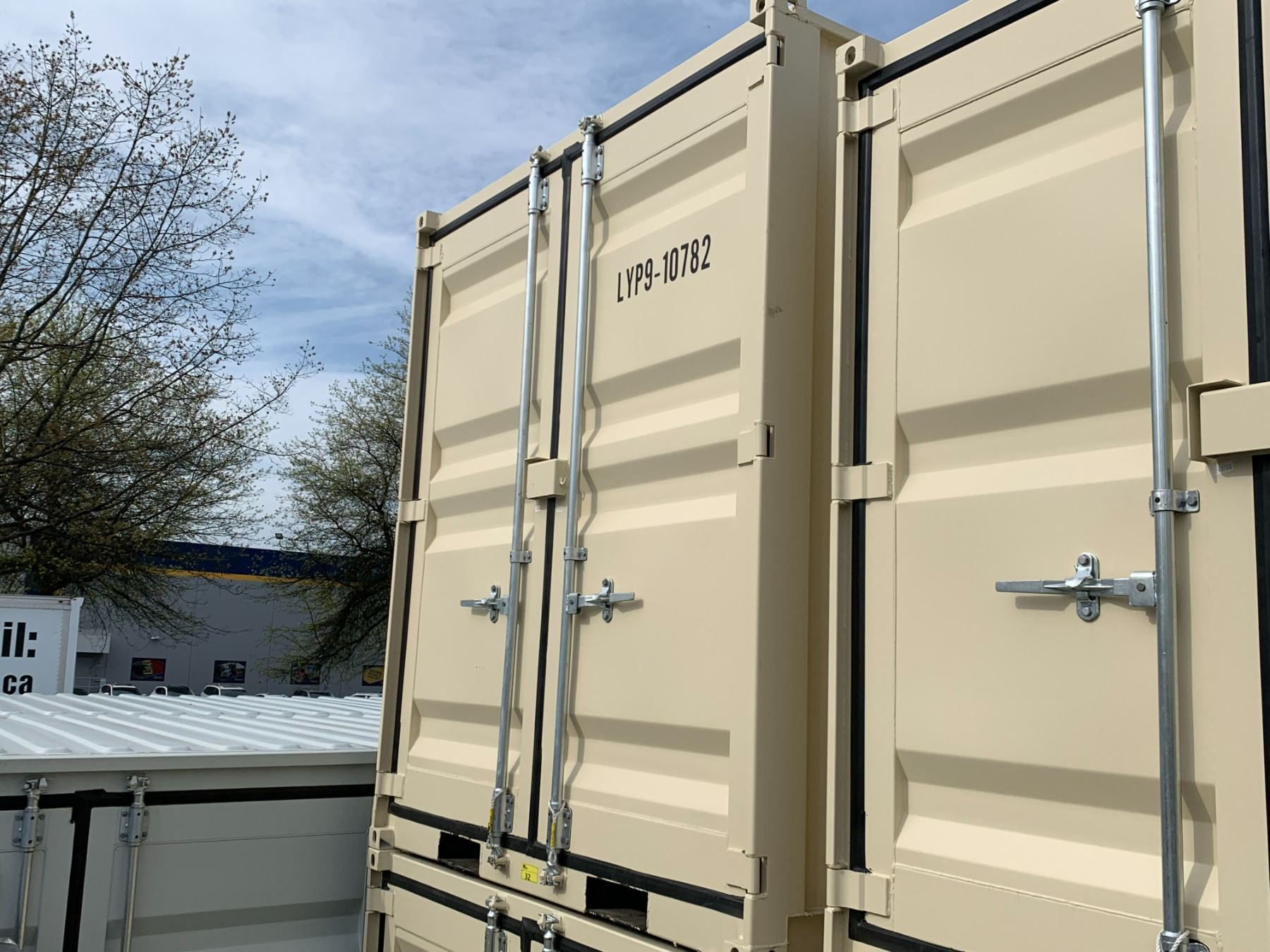 9' BEIGE PORTABLE OFFICE CONTAINER W88" X L108" X H99" WITH WINDOW, LOCKING MAN DOOR, WOOD FLOOR, & DUAL SWING CAM LOCK REAR DOORS