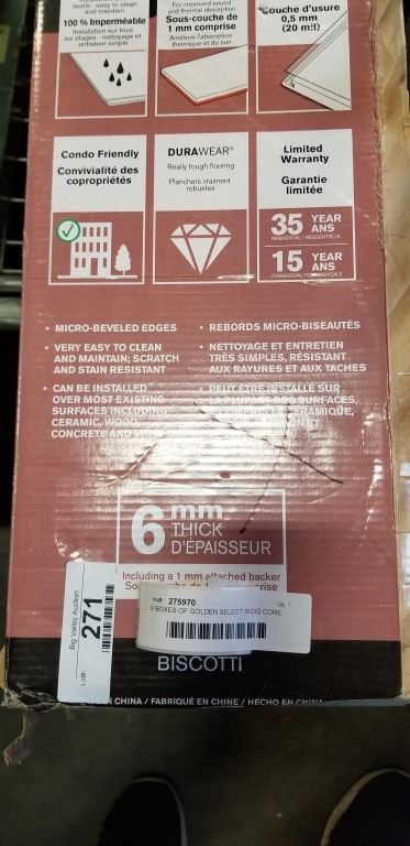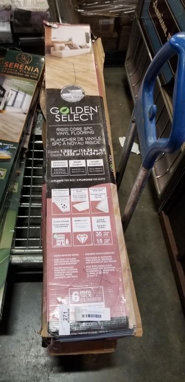 9 BOXES OF GOLDEN SELECT RIGID CORE SPC FLORING 6 PLANKS PER BOX COVERS 1.332 SQM PER CASE