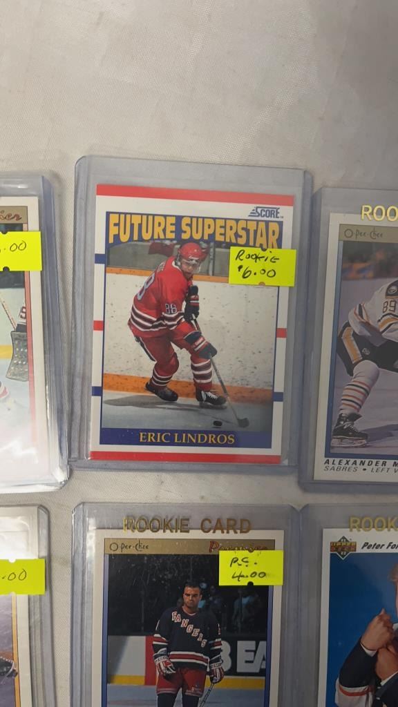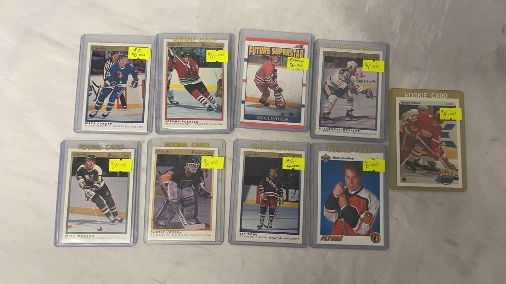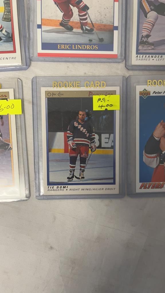 9 NHL ROOKIE CARDS INCLUDING DOMI, LINDROS, SUNDIN ETC