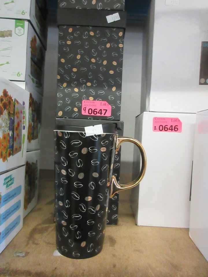 9 New 17 Oz. Ceramic Coffee Cups with Tops